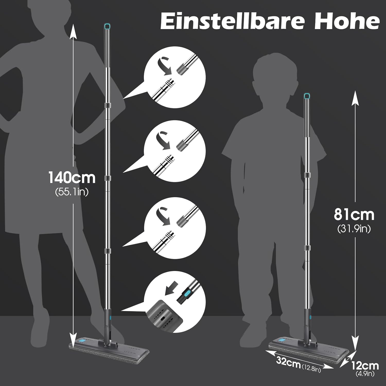 - 🌰【Extra lange Moppstange】: 57 Zoll Moppstange, so dass Sie leicht stehen und wischen können. Edelstahl-Material ist stärker und verbiegt sich nicht. Es ist einfach, hohe Decken, Fenster, Badezimmeroberflächen und andere schwer zu reinigende