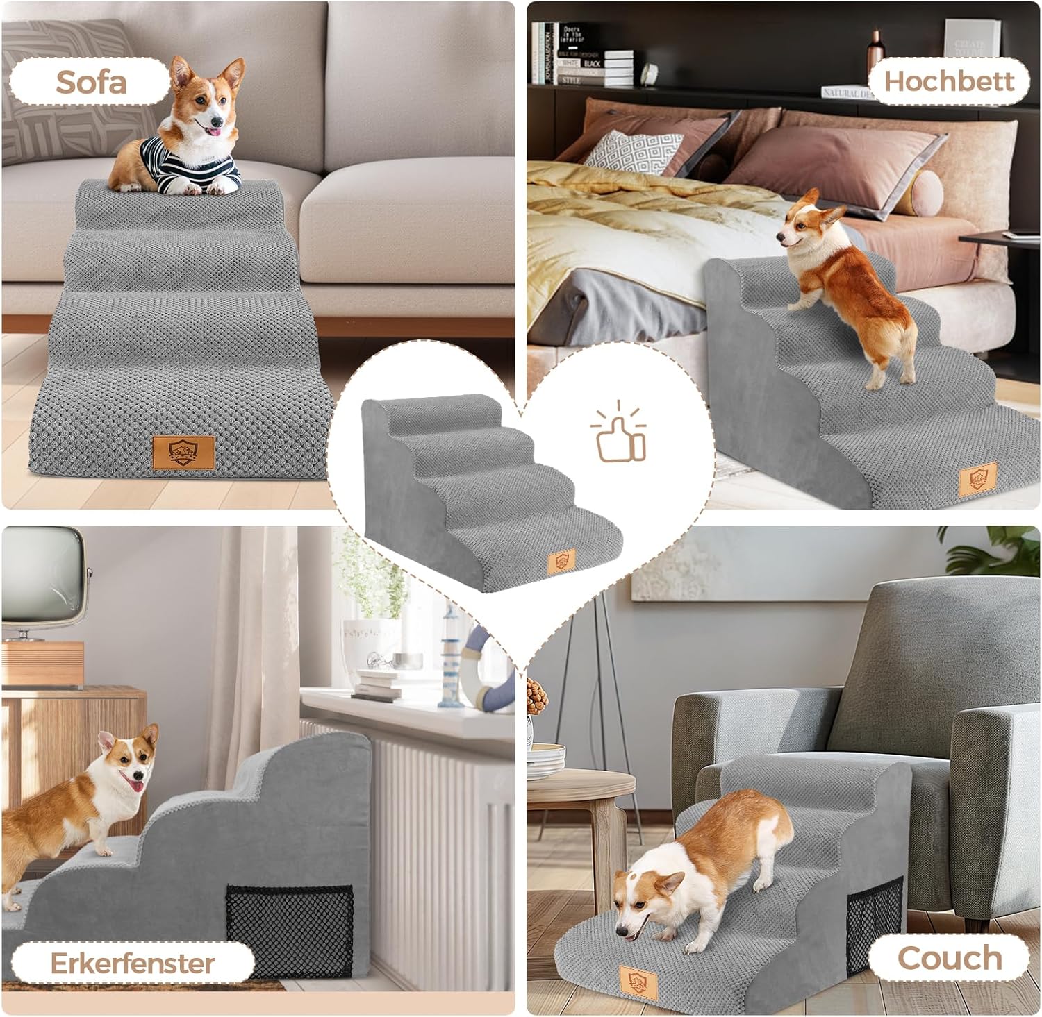 MASTERTOP Hundetreppe 4 Stufen, Hunderampe für Sofa aus Hochdichtem Schaumstoff, Haustiertreppe mit