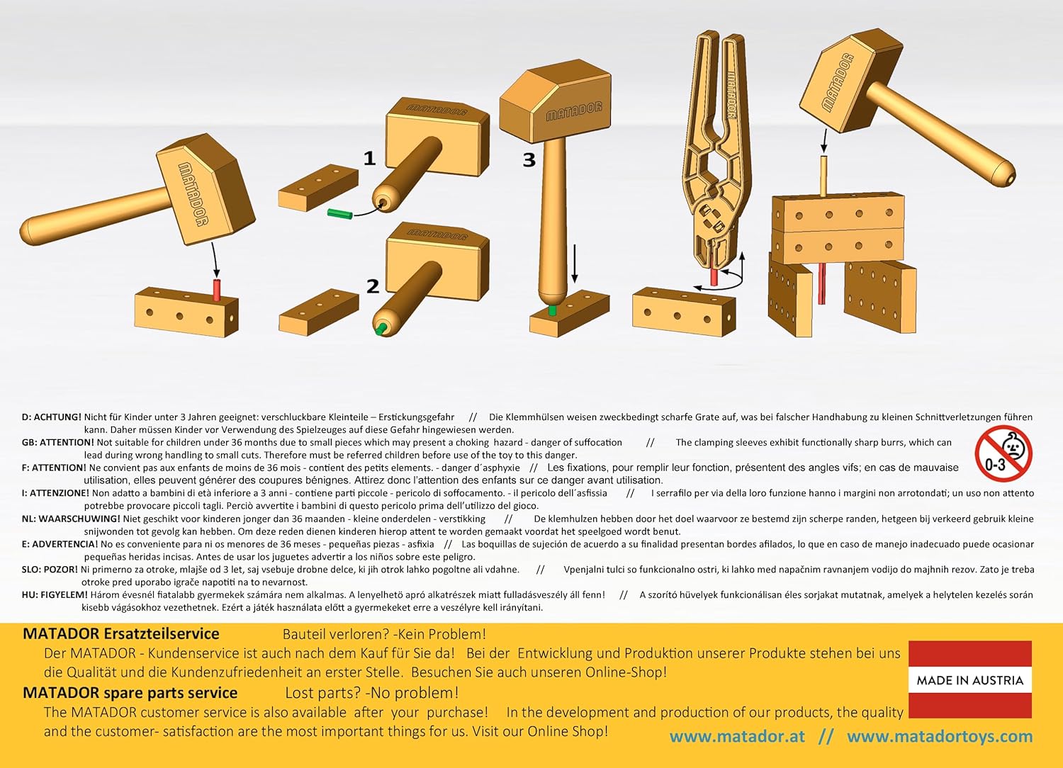 - Enthält 407 Teile - mit Bauklötzen, Stäbchen, Hammer und Zange wird gemeinsam mit Matador die Welt entdeckt, inklusive Heft mit Modellideen.