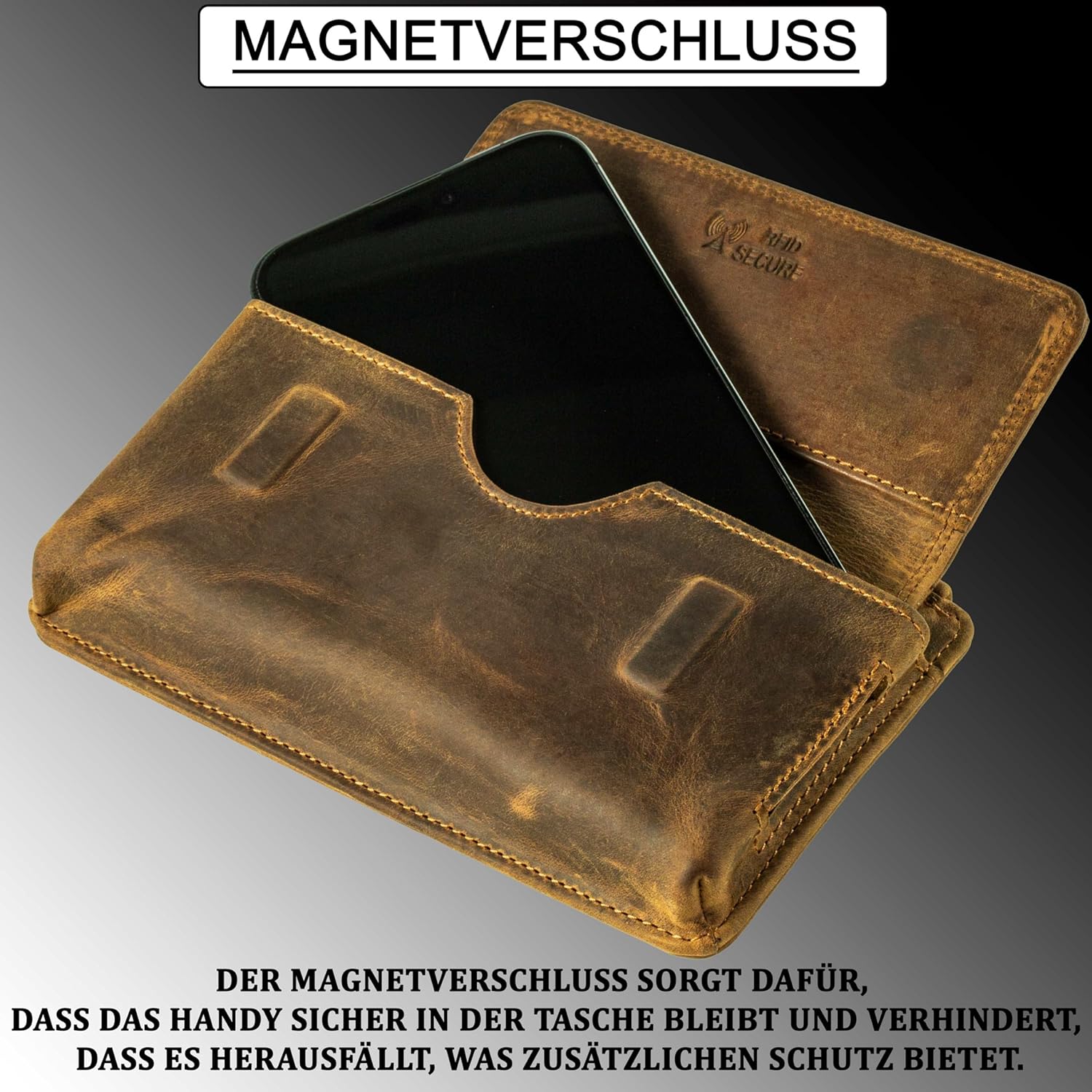 • Kompatibilität: Diese Gürteltasche im Querformat bietet ausreichend Stauraum für ein Smartphone bis zu 6,9 Zoll. 2 Kartenfächer, Platz für Geldscheine und Münzen runden diese Quertasche zum idealen Alltagsbegleiter ab.