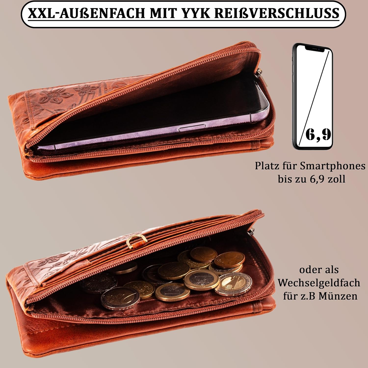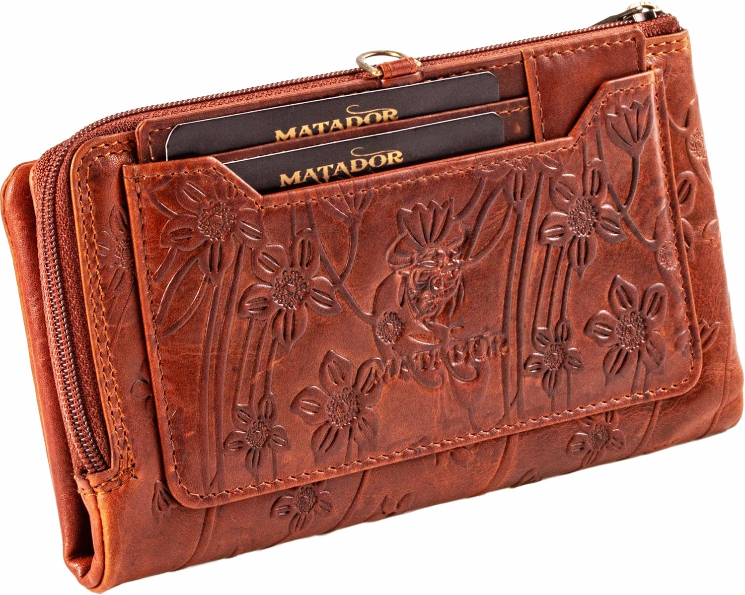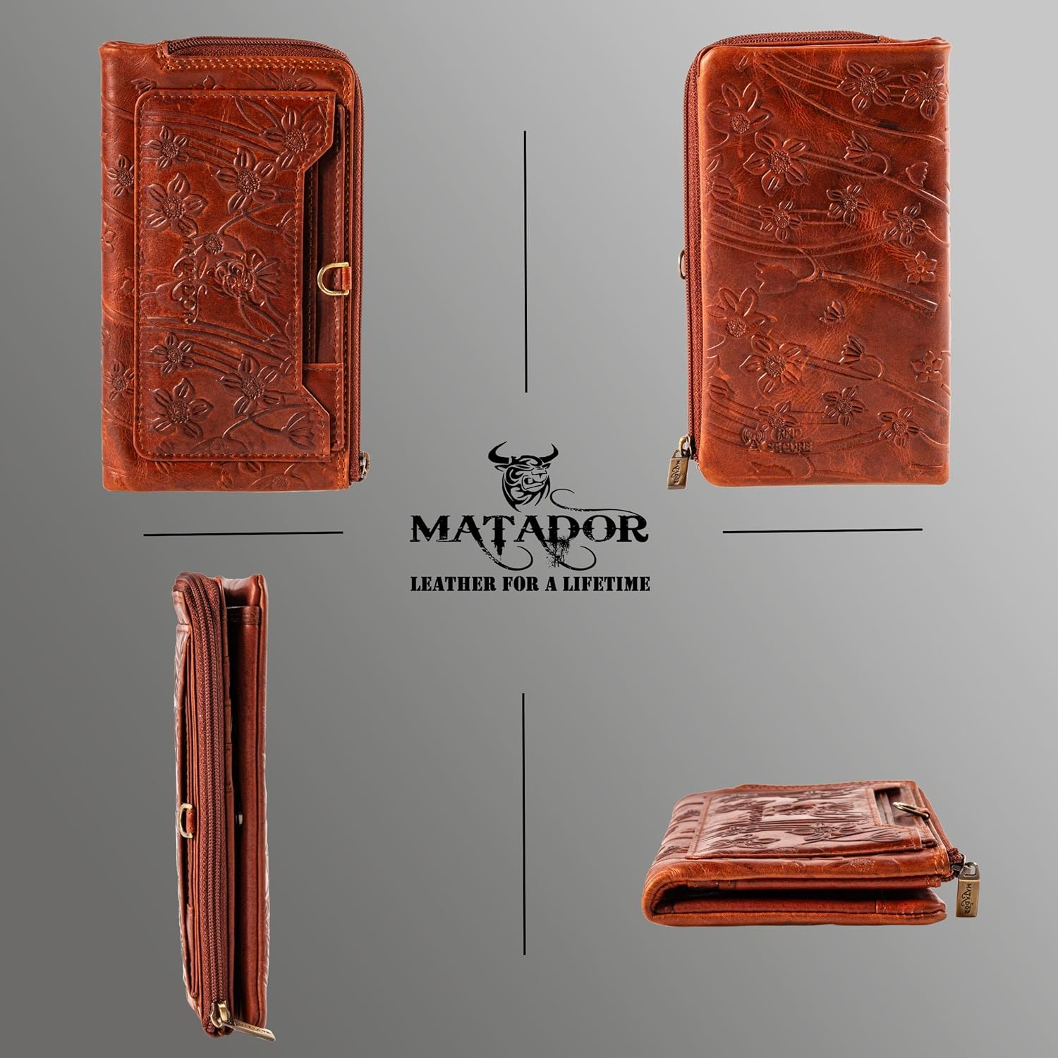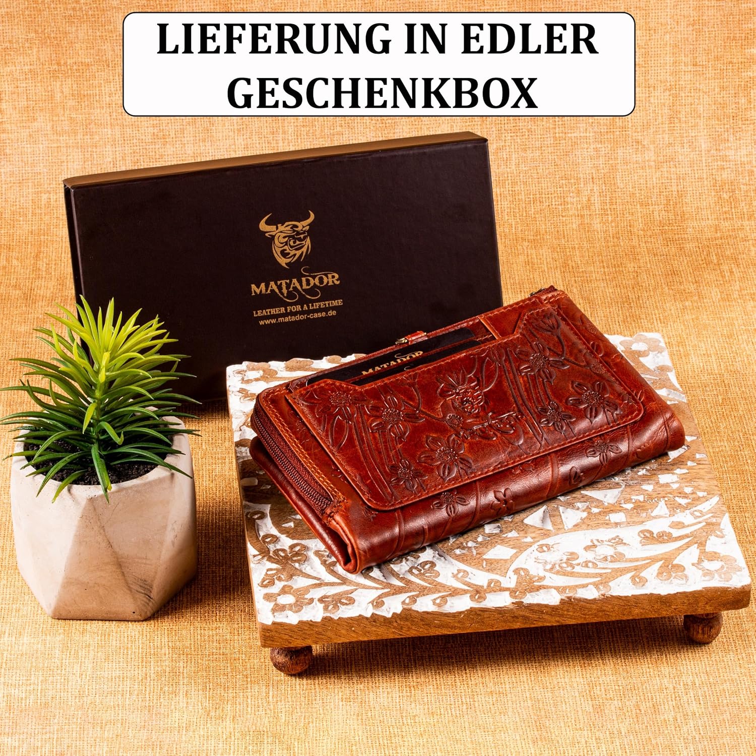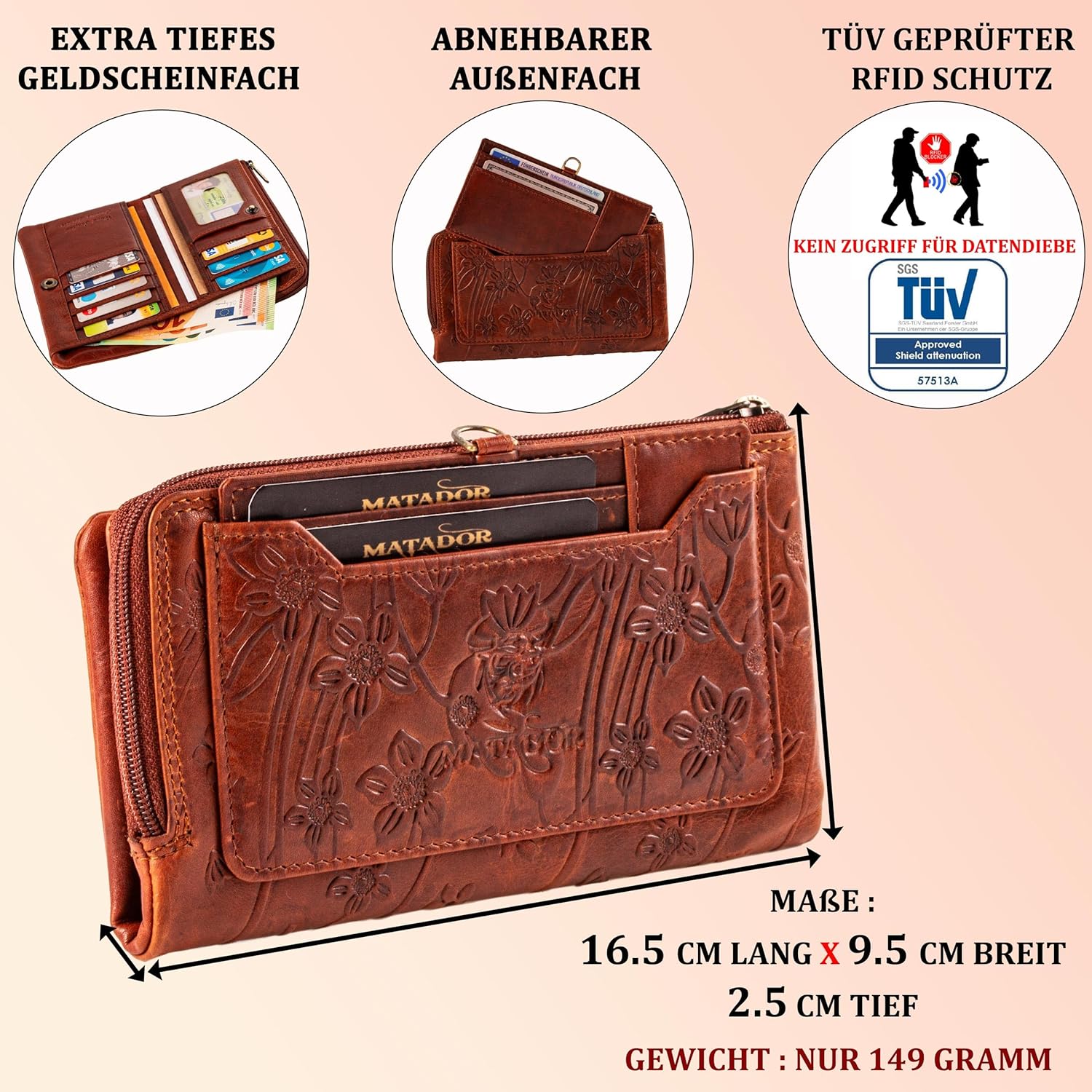 MATADOR Damen Geldbörse Echt Leder Gross 11 Kartenfächer - TÜV geprüfter RFID & NFC Schutz - Handgef