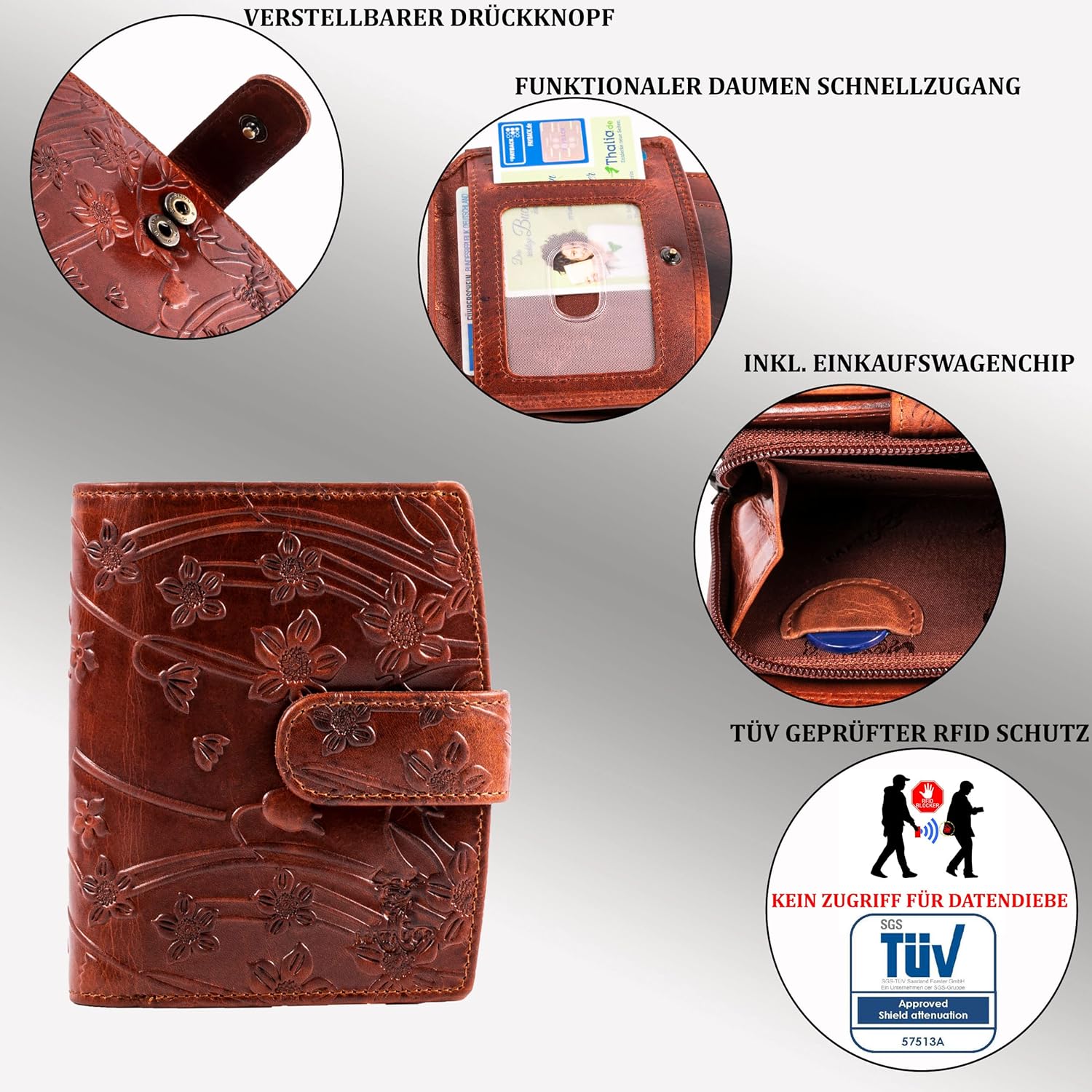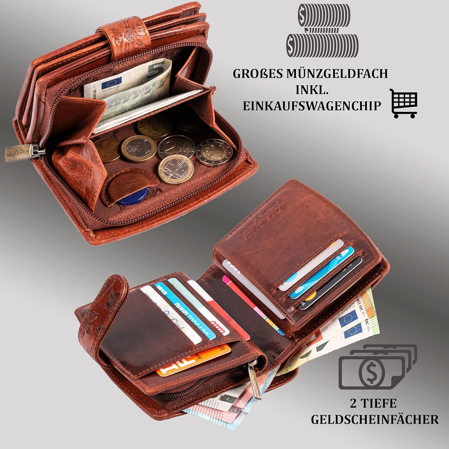 - ✅HANDGEMACHTES ECHT LEDERPORTMONEE– Alle Geldbörsen der Marke MATADOR werden aus Chrome Free Rohleder in Handarbeit hergestellt. Durch die schöne Blumenprägung ist der Geldbeutel ein wunderschönes Accessoire.