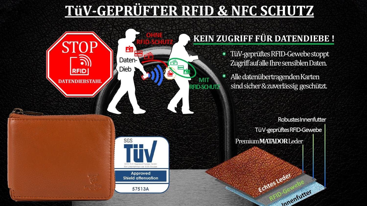 - ✅ TÜV GEPRÜFTER RFID & NFC BLOCKER - Das Innenfutter bietet wirksamen Schutz vor RFID Hackern - Ihre Kreditkarten und EC-Karten sind sicher vor dem Auslesen