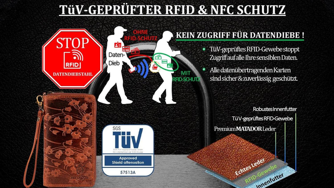 • Das Innenfutter bietet wirksamen Schutz vor RFID Hackern - Ihre Kreditkarten und EC-Karten sind sicher vor dem Auslesen