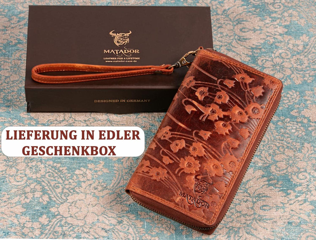 MATADOR Echt Leder Damen Lang-Geldbörse Clutch Portemonnaie TüV Geprüfter RFID Schutz Geldtasche Blu
