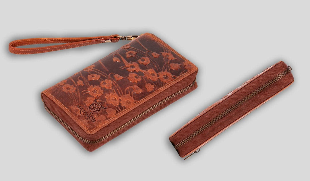 • Handgemachte Echt Leder Damen Langbörse Geldbörse Geldbeutel Portemonnaie Geldtasche aus hochwertigem Rindsleder