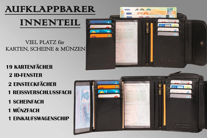- ✅ MITTELGROss & KOMPAKT: 12 Kartenfächer jedes einzeln genäht - 2 Fächer mit Sichtfenster - 4 geteilte Kleingeldfächer - 2 Fächer mit Reissverschluss - 1 Fach für den Einkaufswagenchip