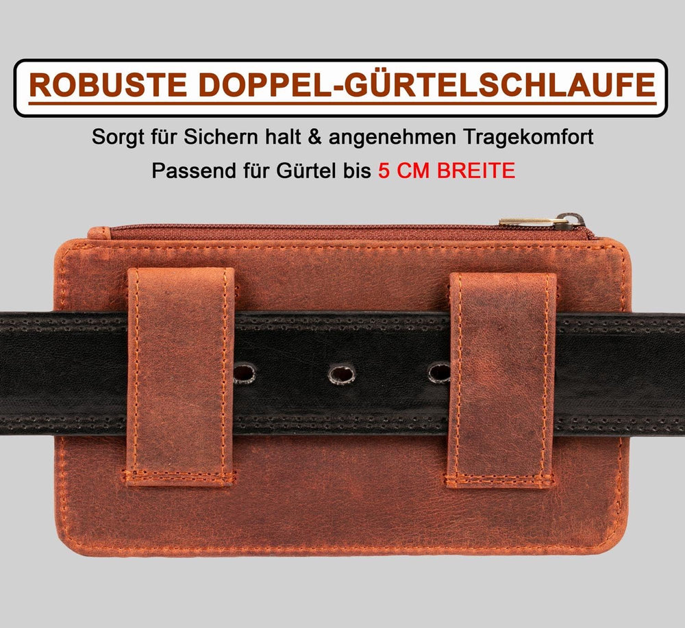 - KOMPATIBILITÄT- Diese Gürteltasche im Querformat bietet ausreichend Stauraum für ein Smartphone bis zu 6,9 Zoll. 2 Kartenfächer, Platz für Geldscheine und Münzen runden diese Quertasche ab.