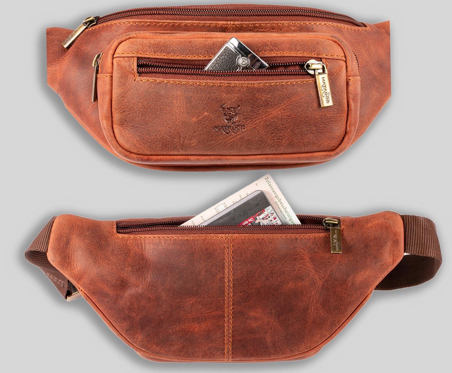 - Matador ECHT Leder Bauchtasche Herren / Damen in einer kompakten Grösse (27 x 14 x 8 CM ) mit vielen Fächern und Verstaungsmöglichkeiten