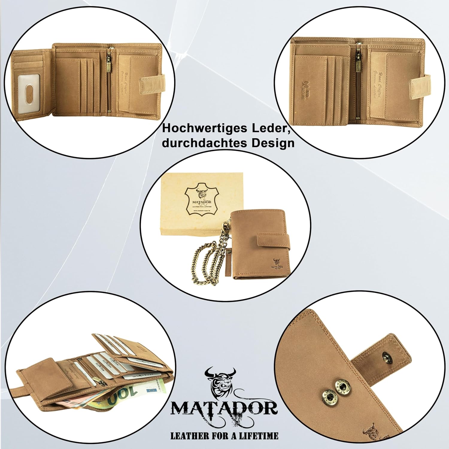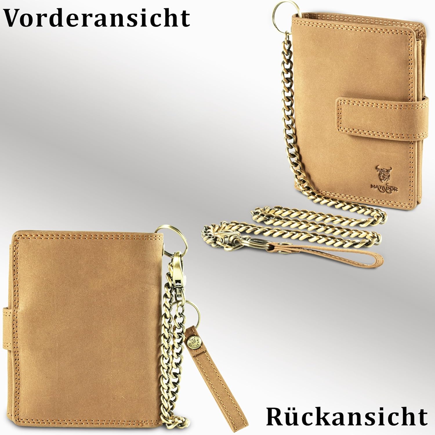 - Leder Biker Geldbörse mit Kette Portemonnaie Geldbeutel aus Chrome Free Rohleder - Jede Geldtasche ist ein Unikat