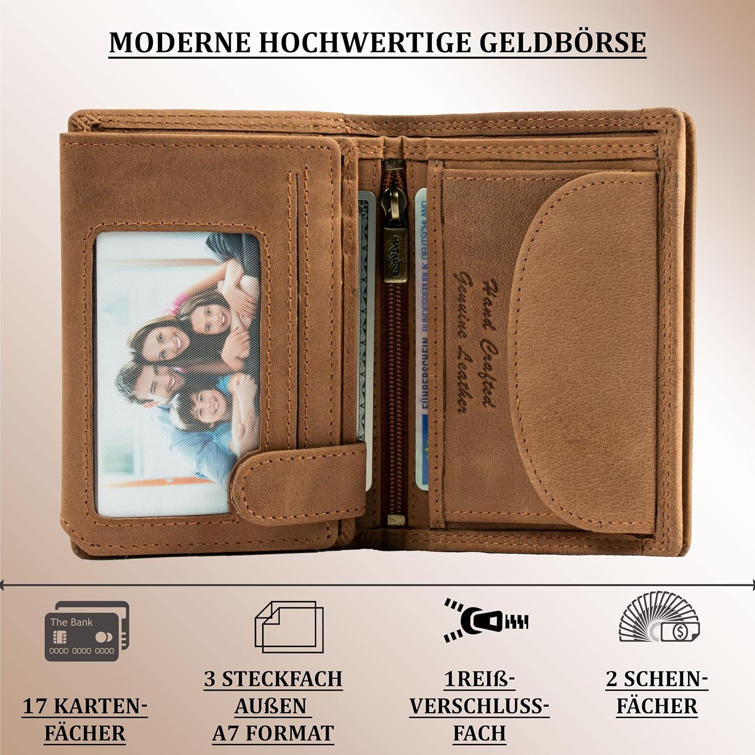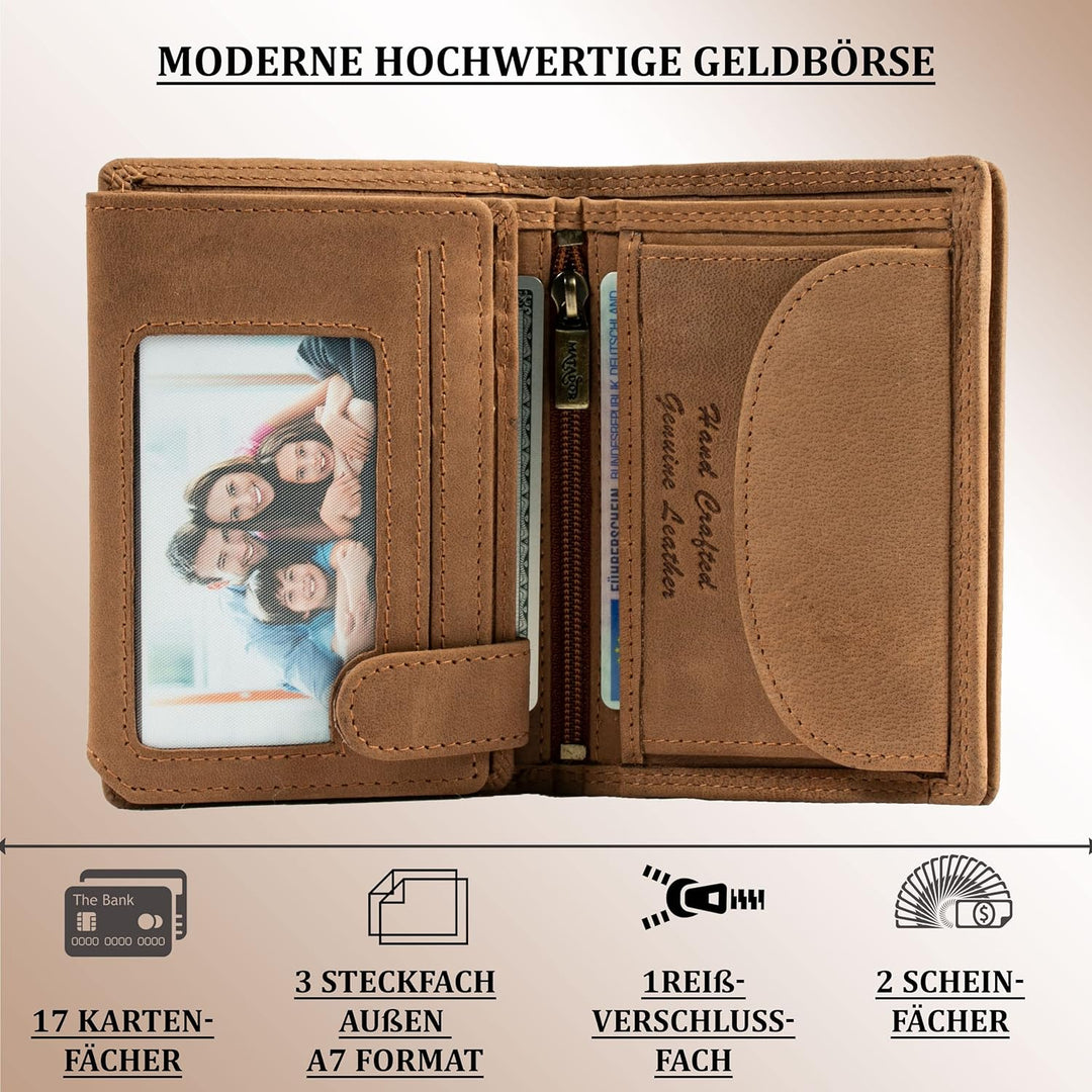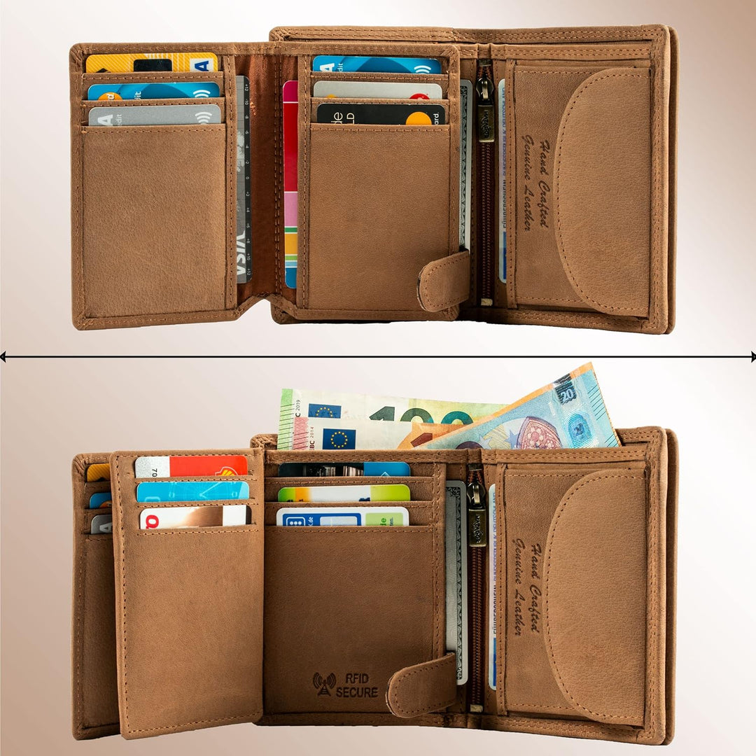 - ✅ GENUG PLATZ: Der Geldbeutel Herren Leder ist ein Platzwunder! Es gibt 13 einzeln genähte Kartenfächer, ein Kleingeldfach mit Reissverschluss und 2 Sichtfenster.
