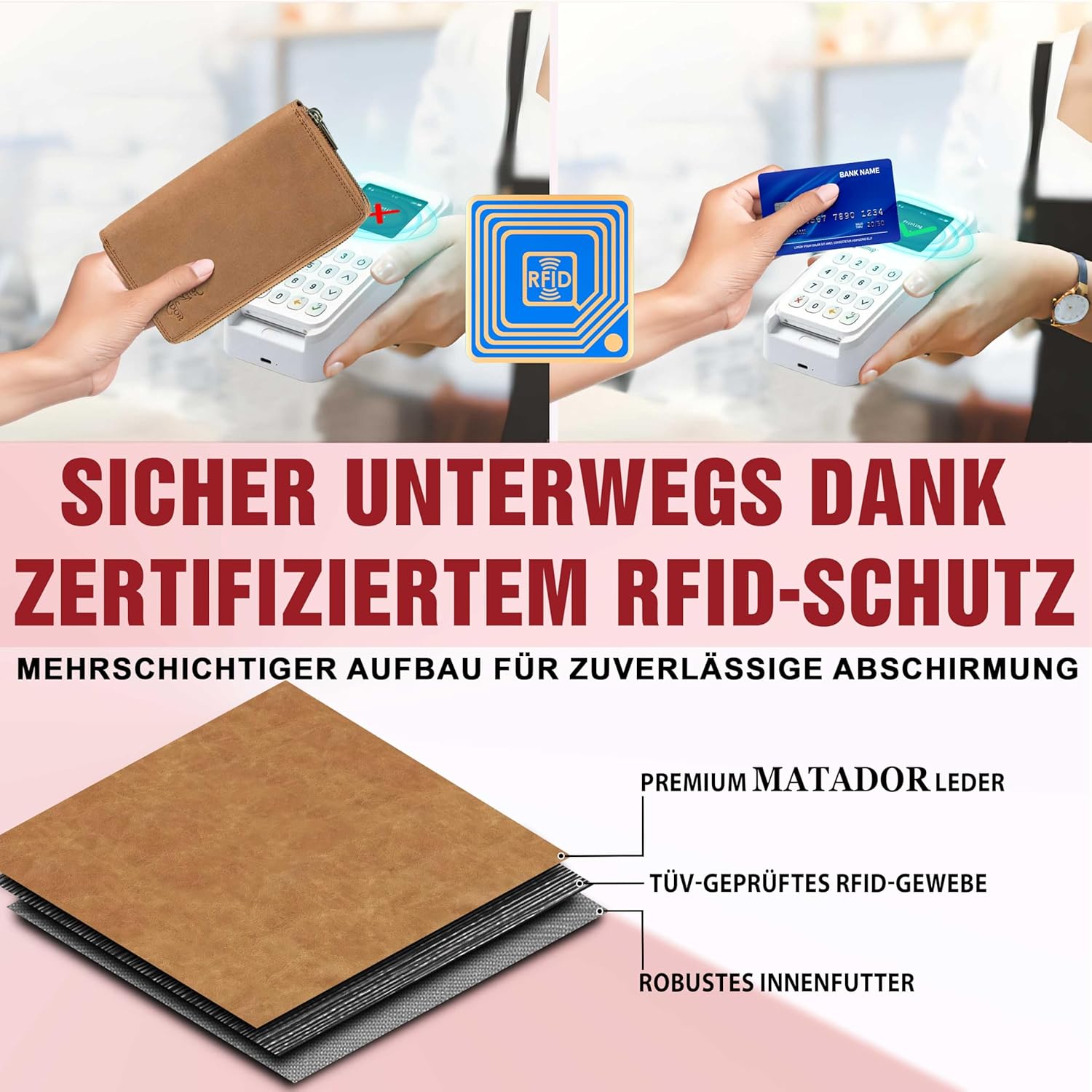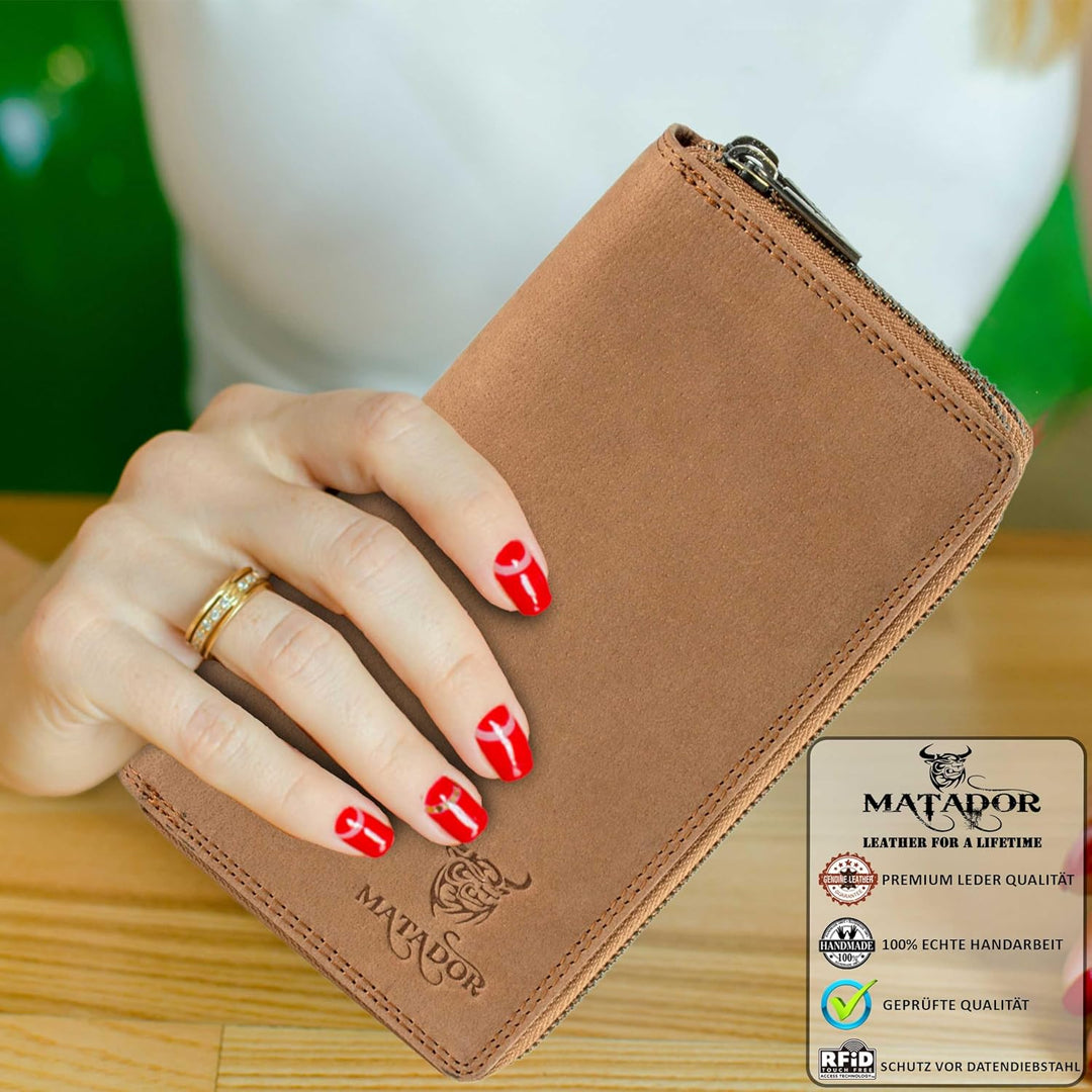 - ✅ DAMEN PORTEMONNAIE LEDER – Die MATADOR Portemonnaie Damen ist aus exklusivem, hochwertigem Leder gefertigt und von erfahrenen Handwerkern mit einem strapazierfähigen Stoff bezogen.