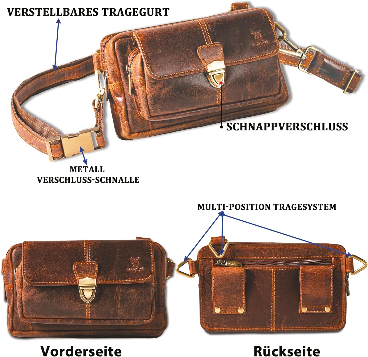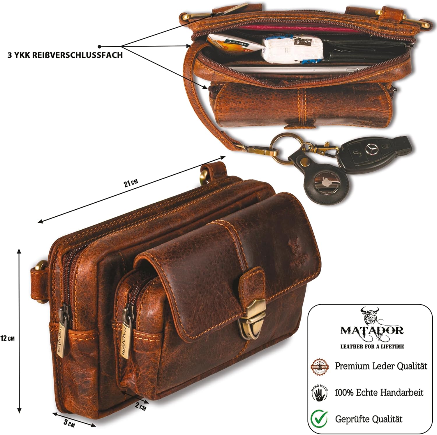 - 《 PREMIUM MATADOR QUALITÄT 》─ Die edle Schultertasche besticht durch ihr einzigartiges Design aus feinstem Rindsleder. Präzise Nähte und der robuste YKK- Reissverschluss garantieren hohe Strapazierfähigkeit und eine lange Lebensdauer.
