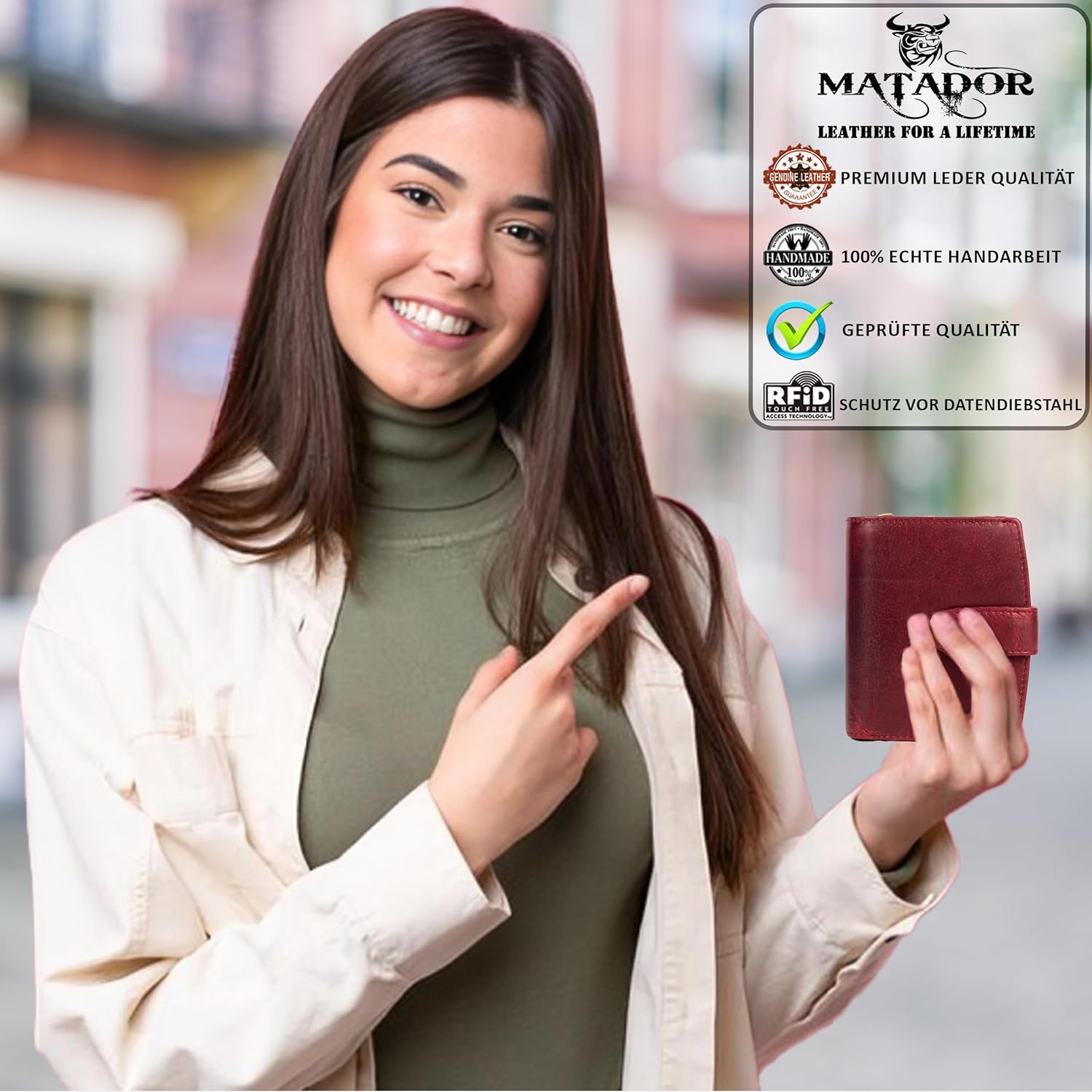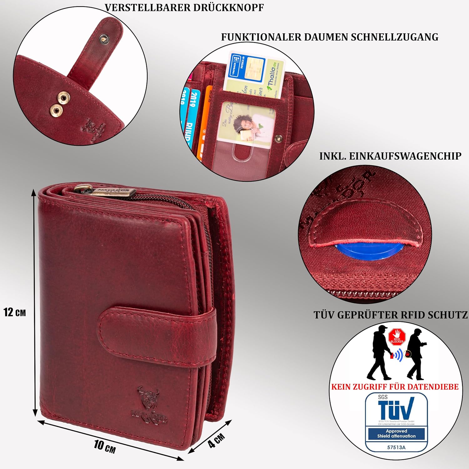 - INTEGRIERTE TÜV Geprüfter RFID FOLIE FÜR IHRE SICHERHEIT– Alle Portmonees von MATADOR sind mit einer geprüften RFID Schutzfolie ausgestattet um Ihre Kreditkarten sowie EC-Karten vor dem Auslesen und Datendiebstahl durch dritte zu schützen..