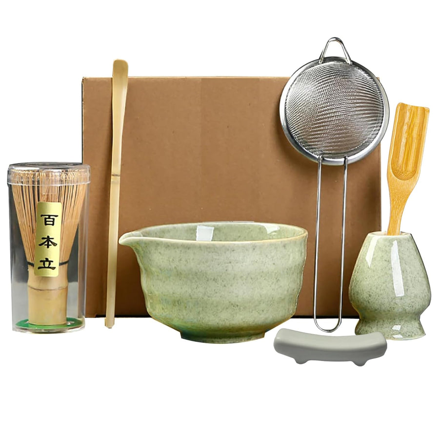 - Stirrer set is a 7-piece tool set: 1 bamboo spoon(chashaku), 1 bamboo stirrer, 1 large ceramic bowl ,1 matcha powder strainer,1 x ceramic spoon holder,1 teaspoon and 1 ceramic stirrer stand. This ceramic matcha set has been carefully crafted to make