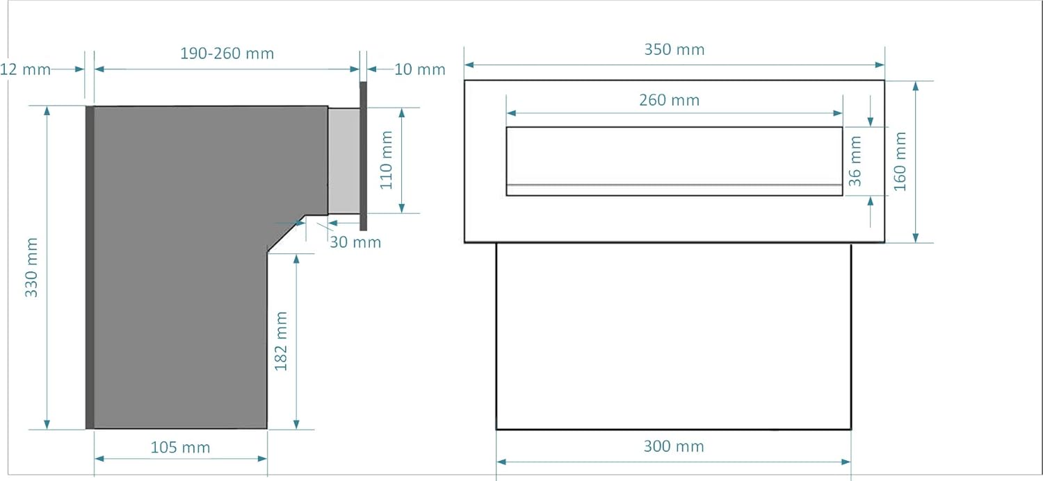 • Frontplatte: 350 x 160 mm (HxB), Einwurfschlitz: ca. 260 x 36 mm
