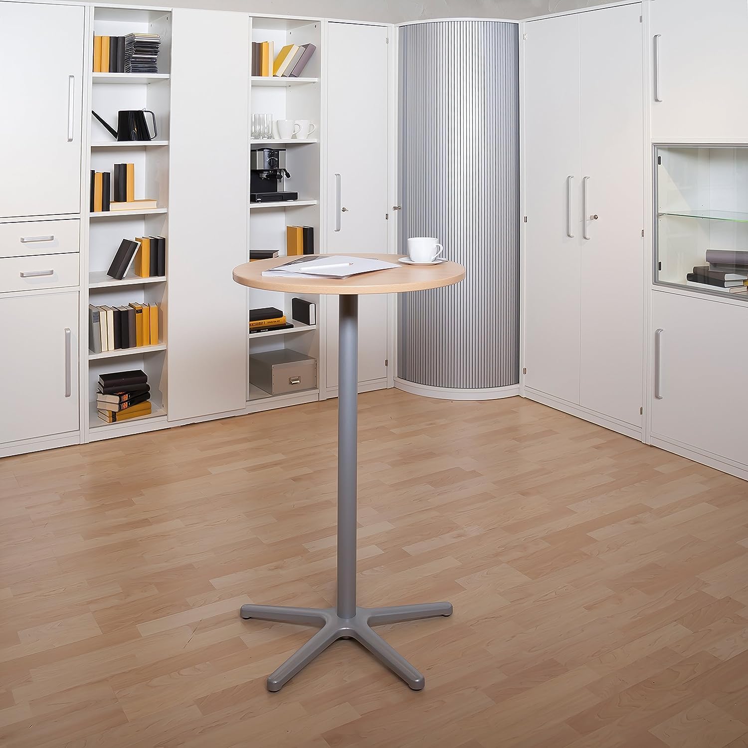 - Praktisches Stehpult mit einem Durchmesser von 60 cm, für Besprechungen, Arbeiten im Stehen oder als Beistelltisch.