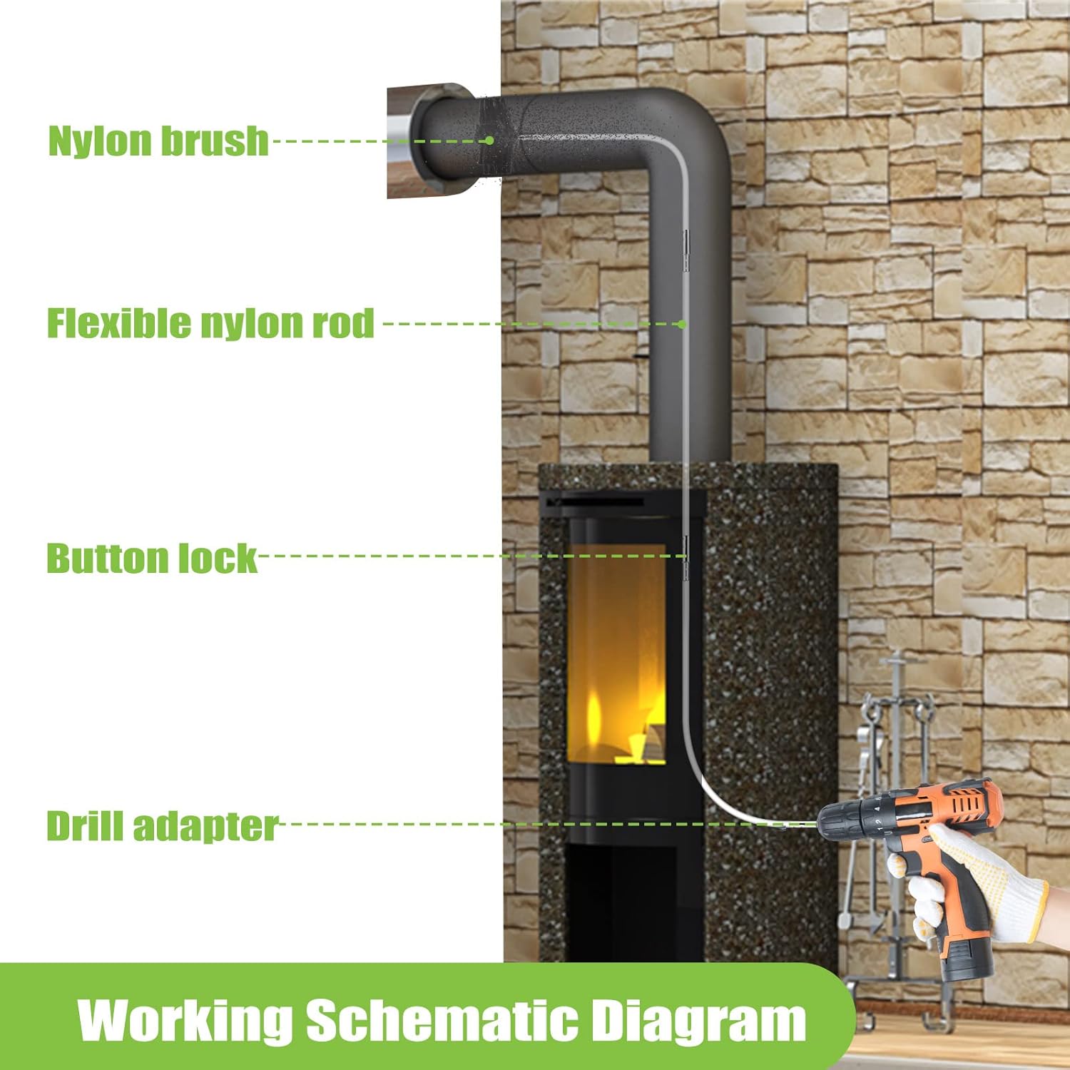 - ✅【Vorteilspackung】Das Set enthält 18 flexible Nylonstäbe mit einer Länge von 41 cm / 16 Zoll, 2 Schornsteinbürstenköpfe mit einem Durchmesser von 10 cm / 4 Zoll, 1 lange Bürste mit Holzgriff, 1 Sechskantstück, 1 Klebeband und 1