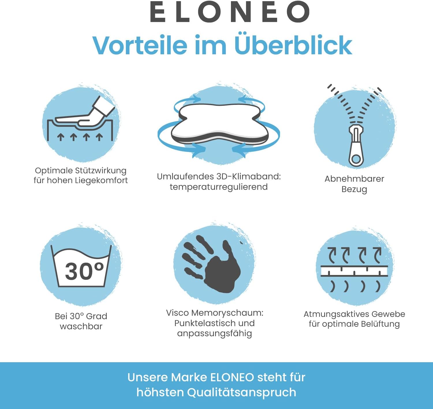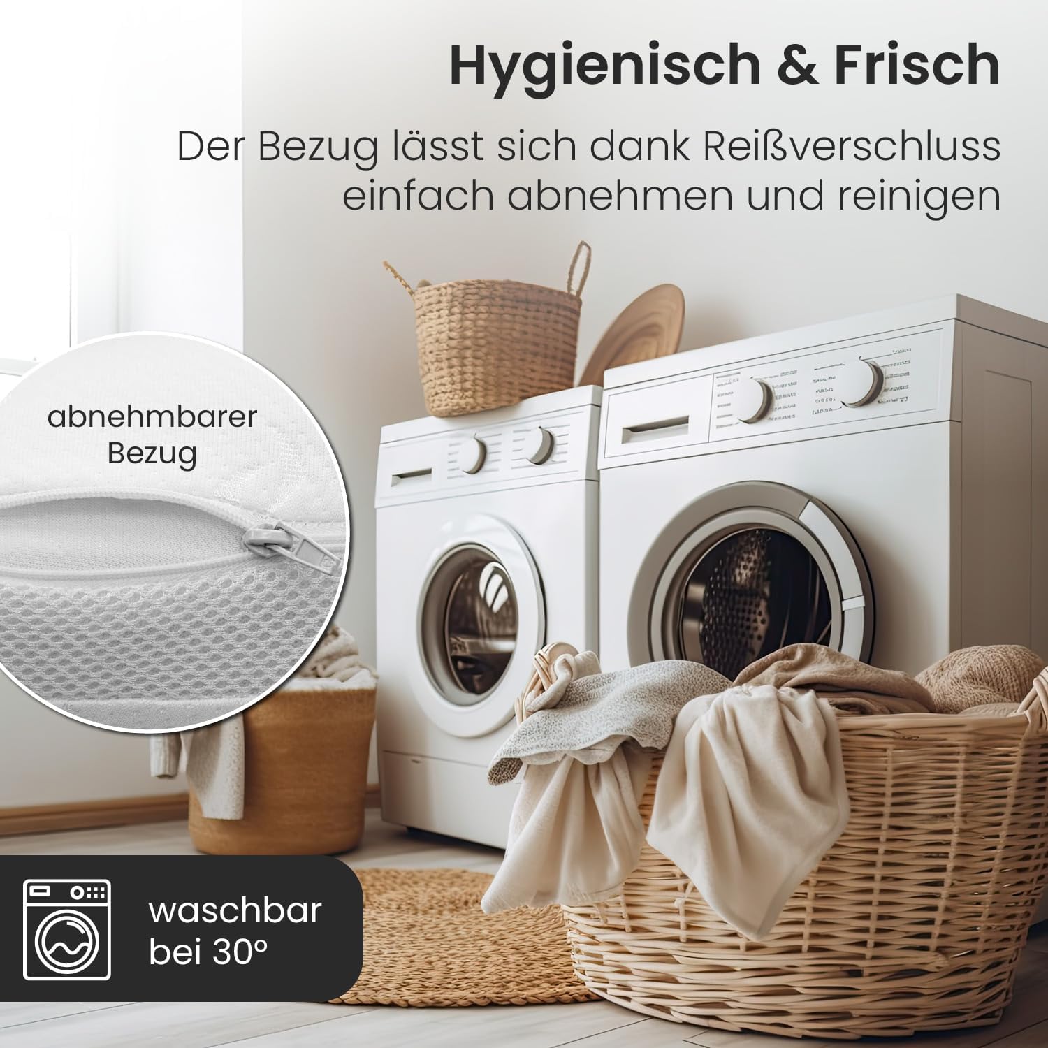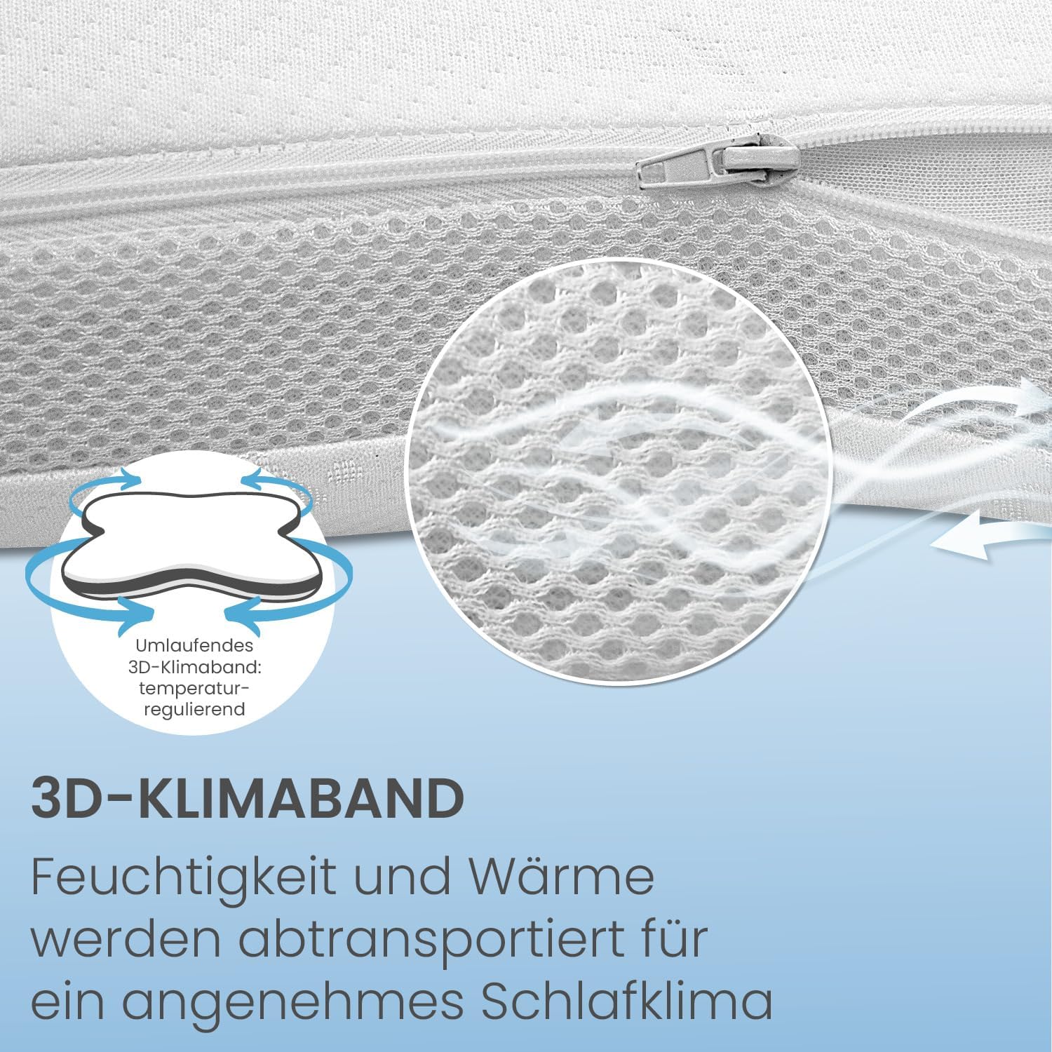 - Hochwertiger Bezug: Der hautsympathische und pflegeleichte Jacquard-Bezug (100 % Polyester) ist mit umlaufendem 3D-Klimaband ausgestattet. Der Bezug ist abnehmbar und in der Waschmaschine bis 40 Grad waschbar.