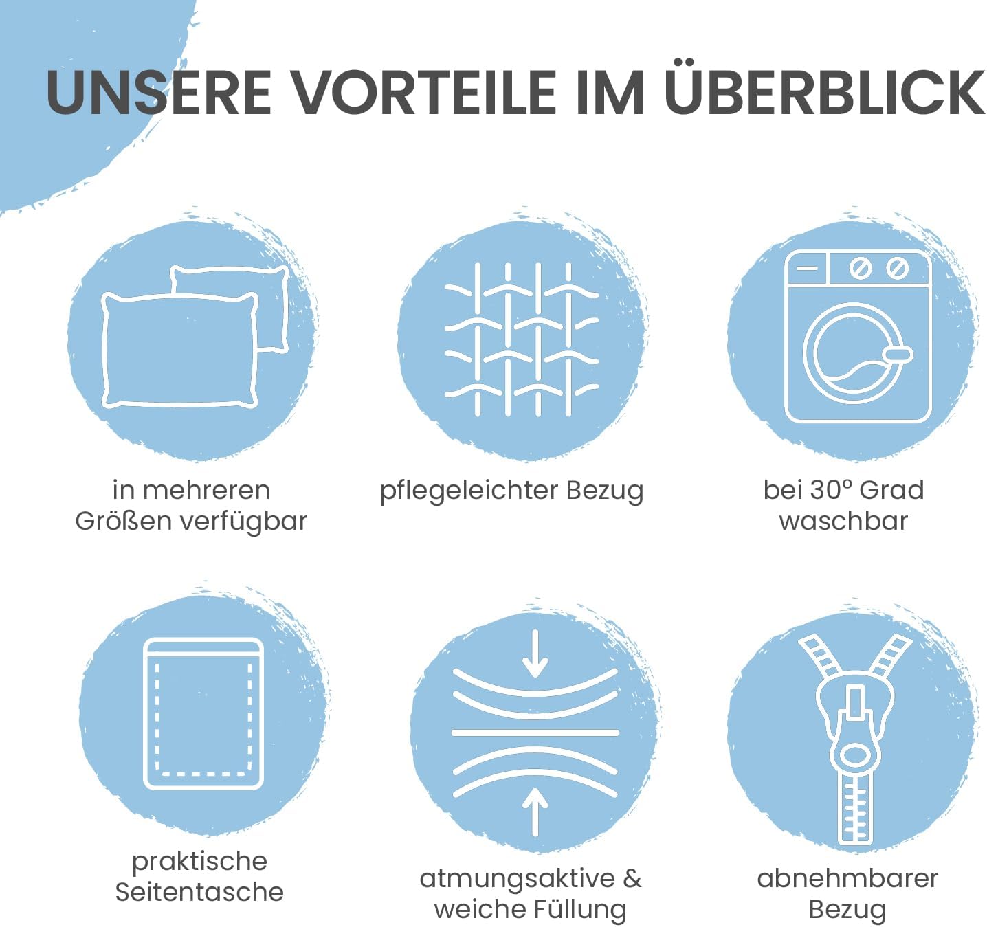 - HOHER KOMFORT AUCH FÜR 2 PERSONEN: Dank seiner ordentlichen Breite bietet Ihnen dieses Kissen genügend Platz, um es auch zu zweit als gemütliche Lehne zu nutzen – im Bett oder auf dem Sofa.