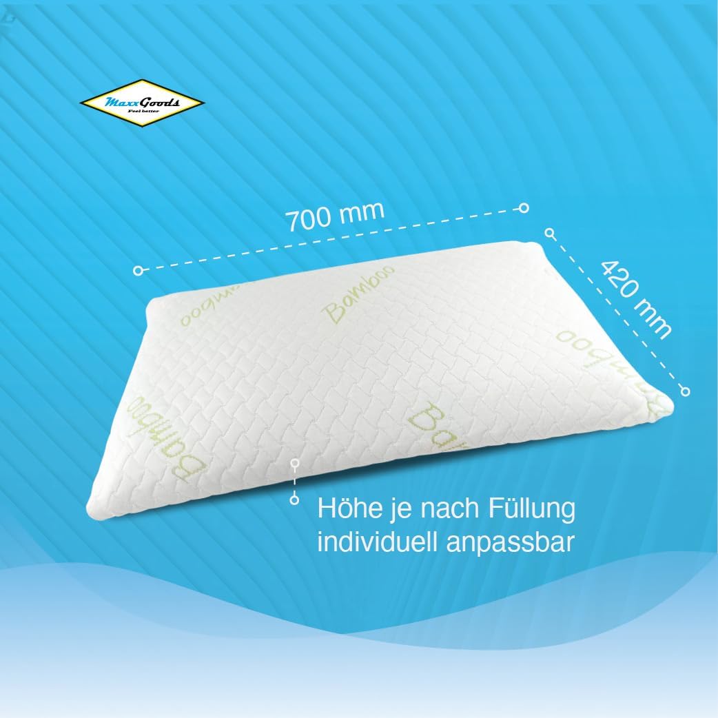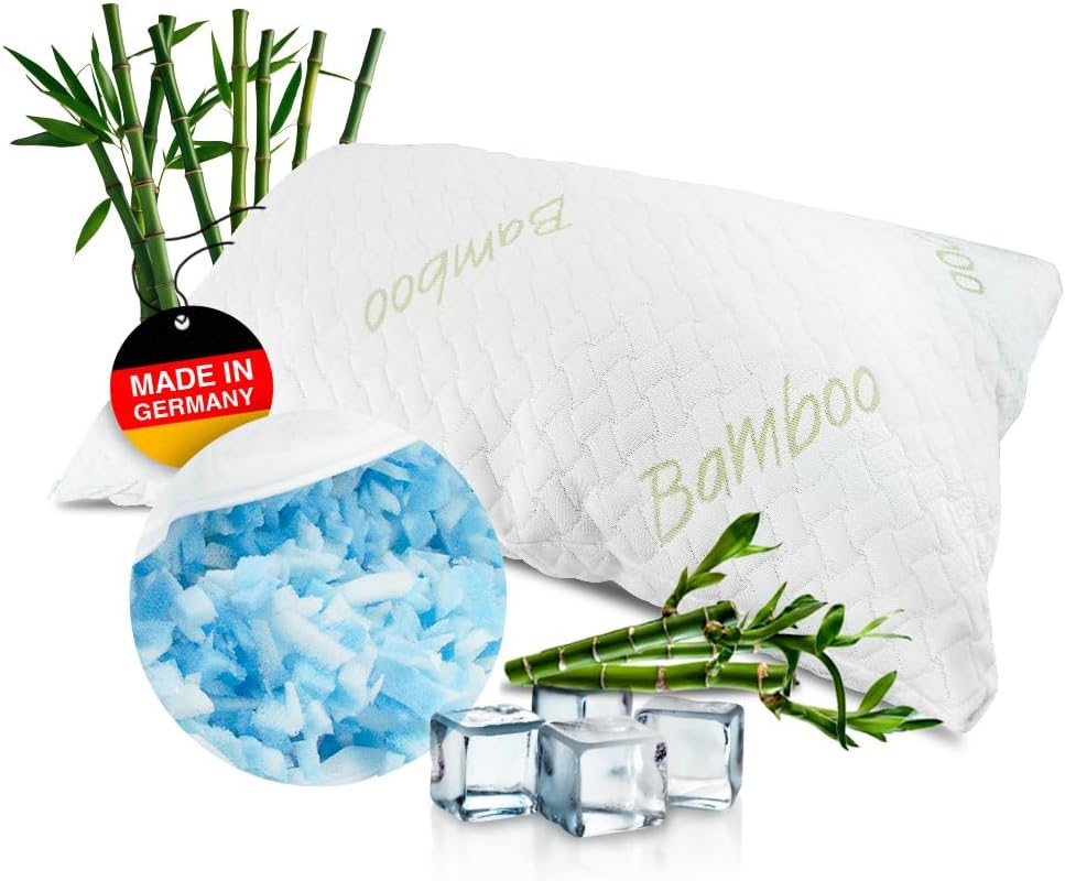 - [KÜHLENDE & ATMUNGSAKTIVE MATERIALIEN] Der weiche Bamboo Kissenbezug sorgt für eine hervorragende Luftzirkulation und wirkt temperaturregulierend. Die atmungsaktiven hochwertigen Gel-Schaum-Sticks verhindern Wärmestau, reduzieren Schweissbildung und