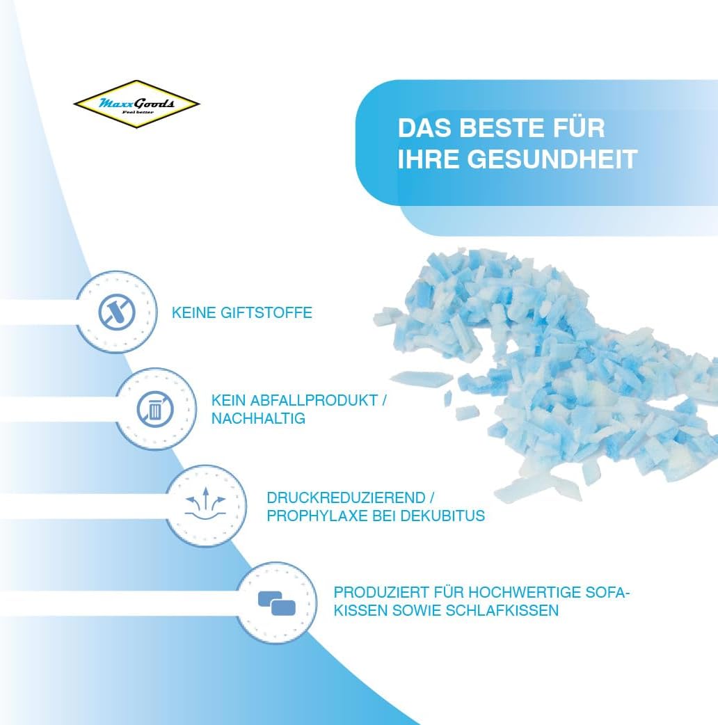 • [ANPASSBARE HÖHE FÜR INDIVIDUELLEN KOMFORT] Das MaxxGoods ermöglicht durch seine Füllung aus kühlendem Soft-Schaum in blauen Flocken eine variable Kissenhöhe. Ideal für Bauch-, Rücken- und Seitenschläfer, die sich ein individuell anpassbares