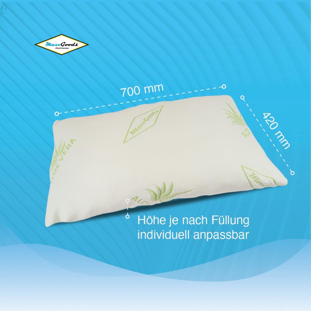 • [IDEAL FÜR ZUHAUSE] Das MaxxGoods Kissen in der Grösse 42x70cm ist perfekt für den täglichen Einsatz im Bett. Es bietet optimalen Komfort und unterstützt eine gesunde Schlafposition – ideal für alle, die auch zu Hause ein luxuriöses