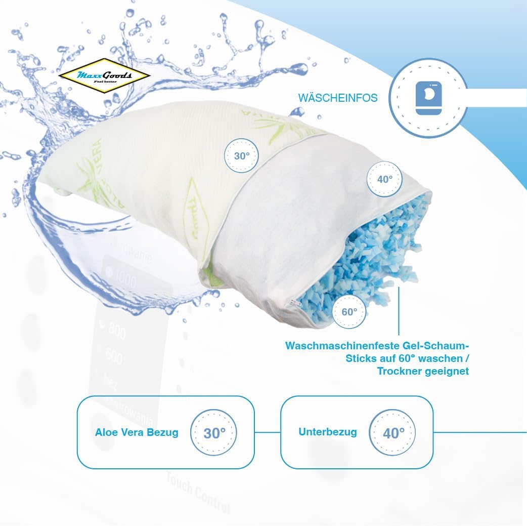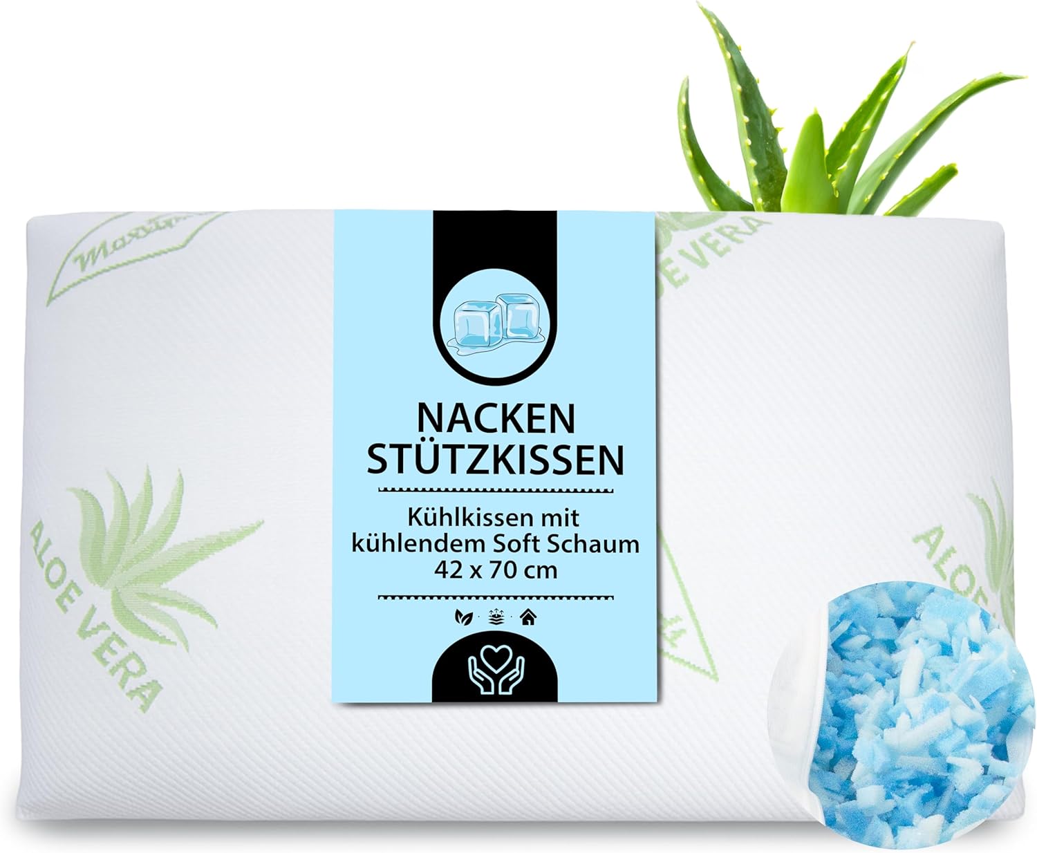 MaxxGoods Nackenstützkissen 42x70cm aus Gel-Schaum-Sticks + Baumwollbezug Aloe Vera Bezug - Kühlkiss