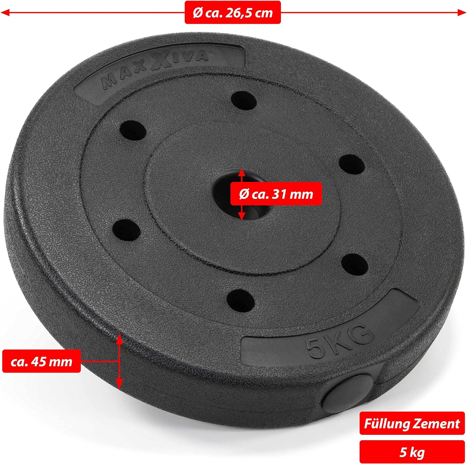 - Die MAXXIVA Gewichte sind für alle Hantelstangen mit einer Scheibenaufnahme von Ø 30/31 mm geeignet. Ideal für den Studiobetrieb und zu Hause. Die Gewichte sind perfekt mit unseren Kurzhantel-, Langhantel- und Curlstangen kombinierbar!
