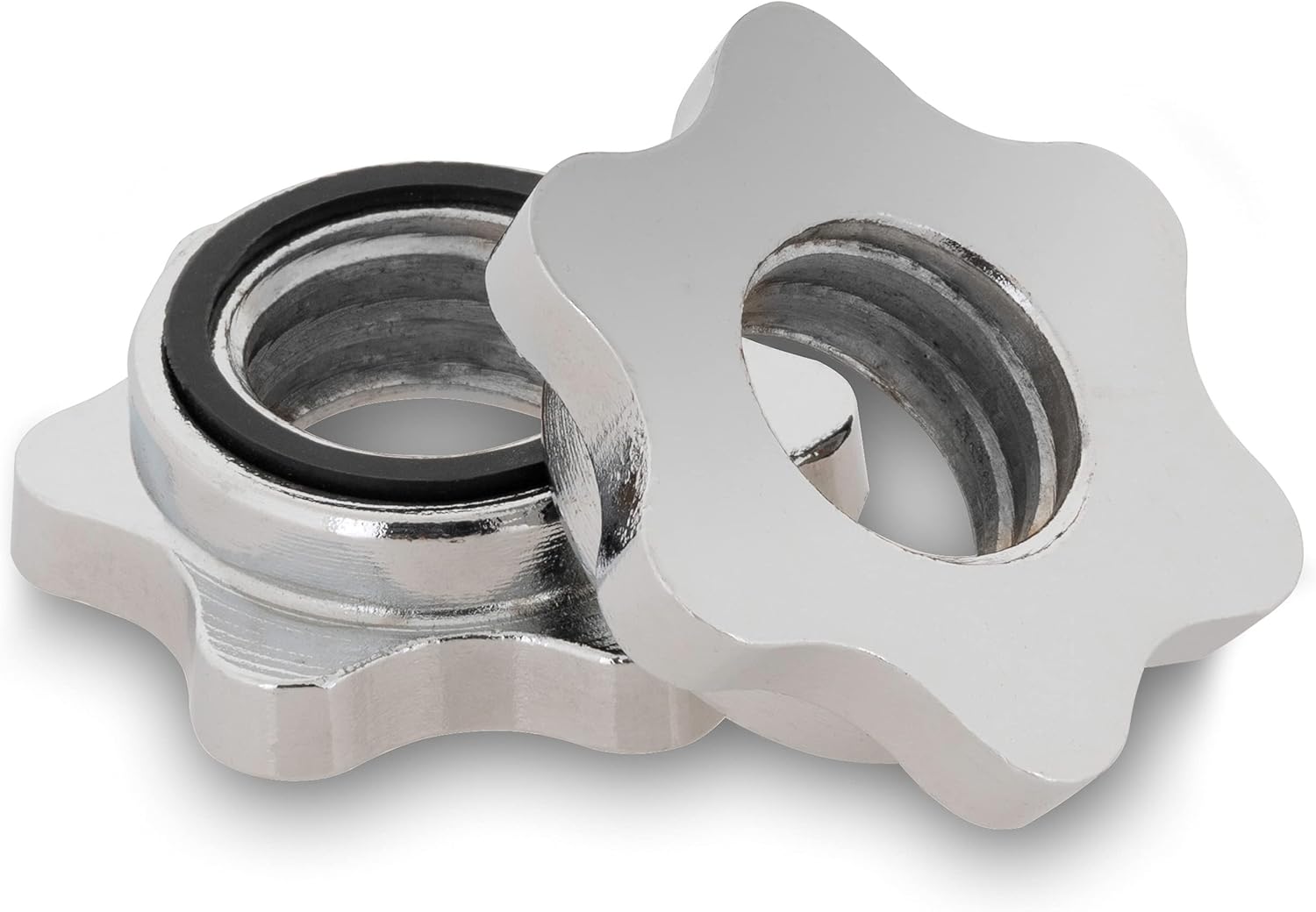 - Schnell zu wechselnde Stern-Verschlüsse fixieren die Gewichte sicher auf der Hantelstange und garantieren einen bequemen Wechsel der Gewichte. Mit den kreuzgerändelten Griffen an der Stange kann Ihre Hand die Stange sicher greifen.
