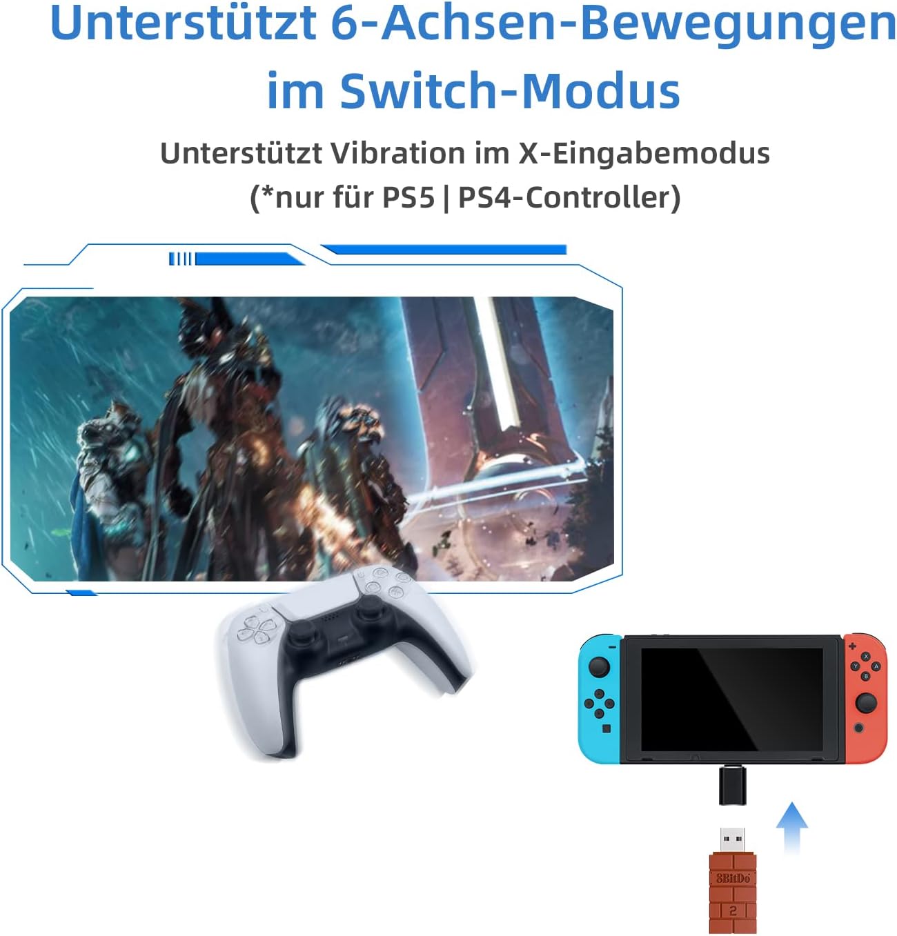 - Unterstützt: Vibration im X-Eingabe-Modus für PS5- und PS4-Controller, X-Eingabe, D-Eingabe, Mac-Modus, Switch-Modus, unterstützt 6-Achsen-Bewegungen auf Switch. Lag frei. Firmware aktualisierbar.