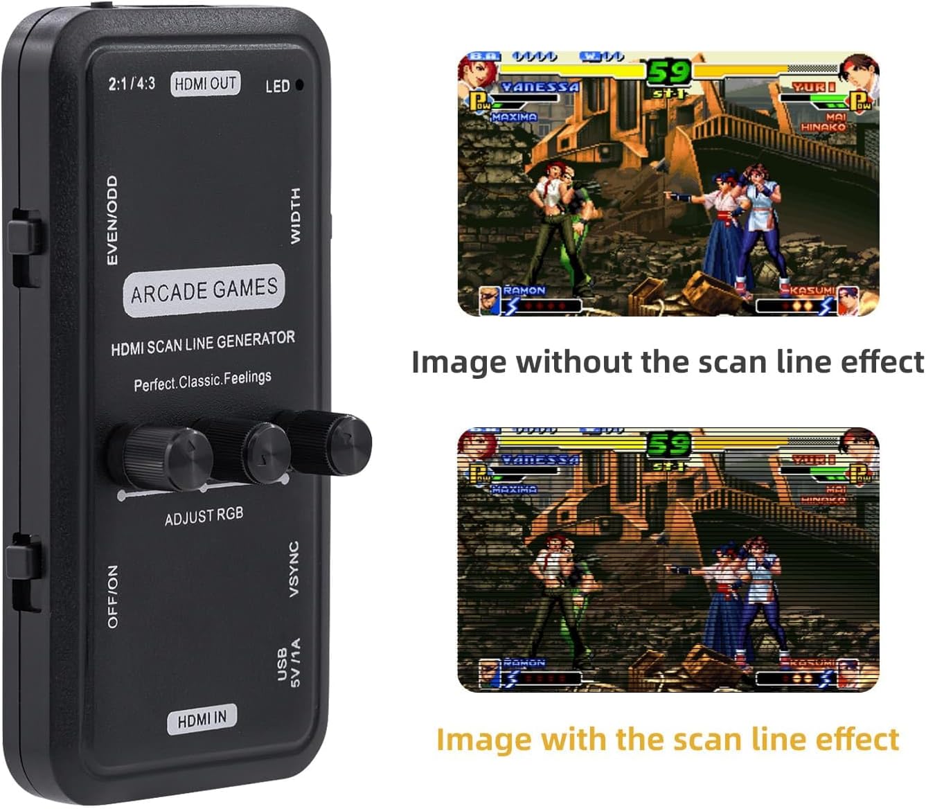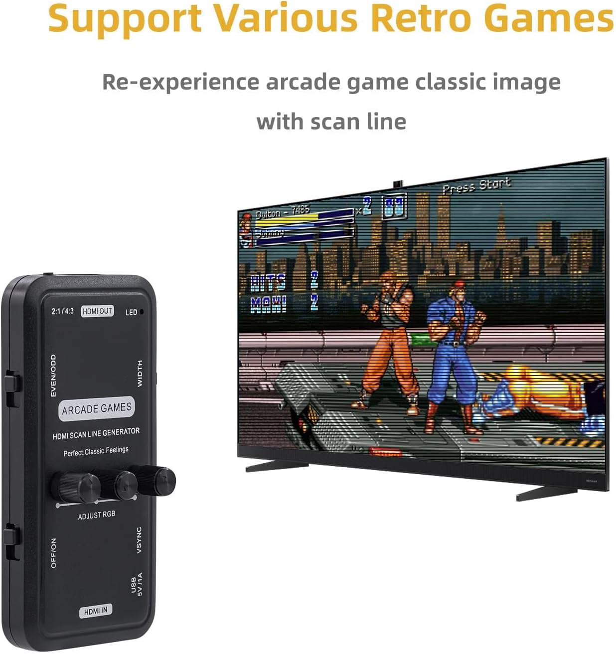 - The scan lines added to the game screen are done by hardware. Any game that needs to add a scan line can be done by linking the device The scanner is a self-powered device and does not require an external power supply.