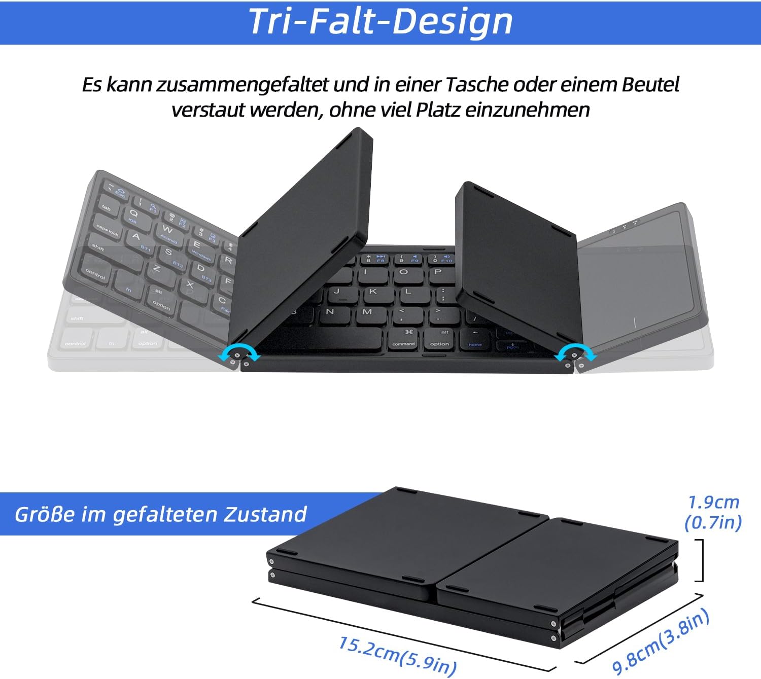 - Empfindliches Touchpad: Diese faltbare kabellose Tastatur wurde aufgerüstet und der Touchpad-Bereich unterstützt Multitouch, sodass Sie das Gerät ohne Maus steuern können, was bequemer und effizienter ist. Diese Touch-Tastatur ist kompatibel mit
