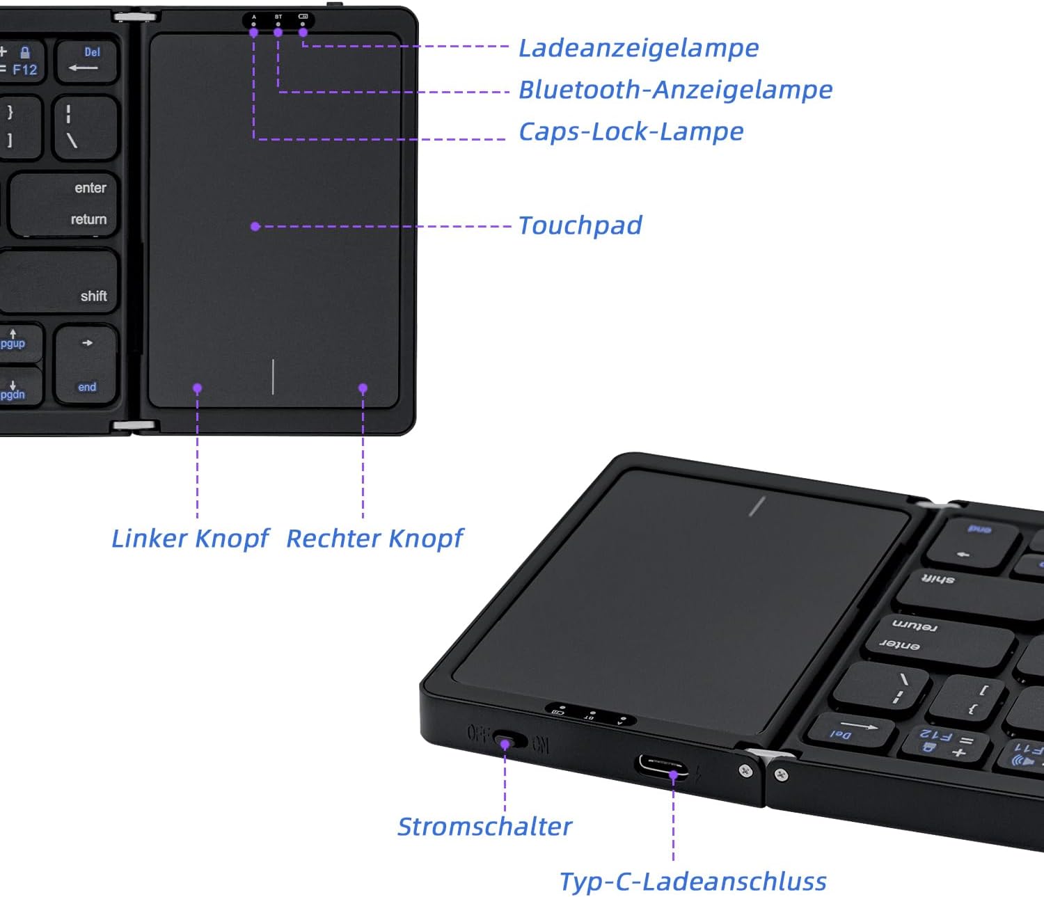 - Faltbare kabellose Tastatur: Unsere ultradünne faltbare Tastatur nimmt die Bluetooth 5.1 Mastersteuerung an, niedrige Latenz, sehr geeignet für Reisen und Geschäftsreisen. Das faltbare Design passt problemlos in Ihre Tasche oder Tasche für ultimative