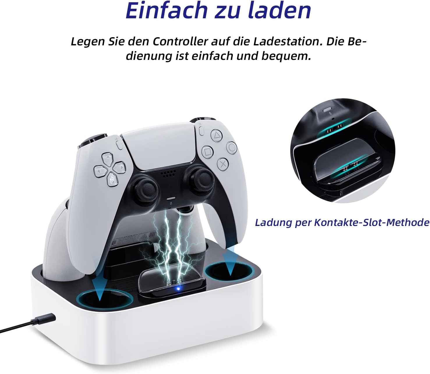 - 【Schnelles Laden】Diese PS5-Ladestation hat eine Ausgangsspannung von 5 V DC / 2,2 A (1,1 * 2), die Ihren PS5-Controller in nur 2-3 Stunden vollständig aufladen kann, bietet schnelles und effizientes Laden.