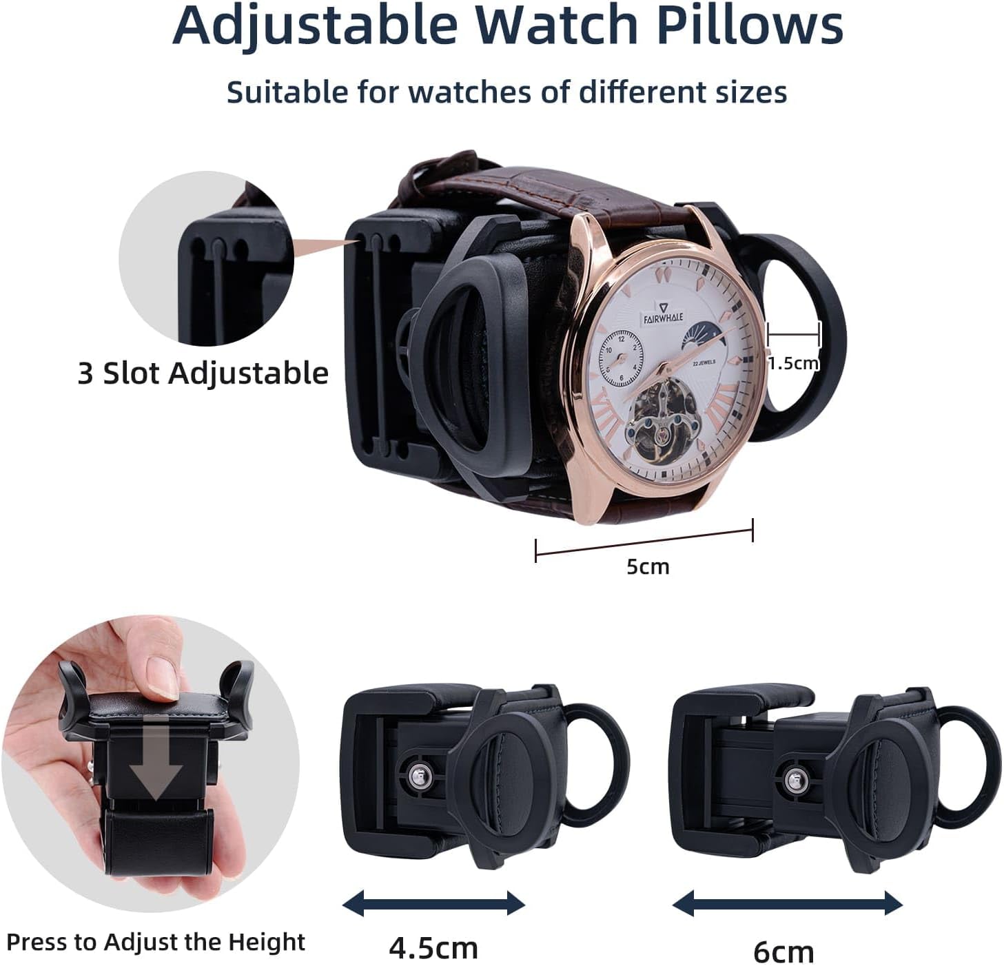- Einstellbares Uhrenkissen Das Uhrenkissen der Automatikuhr Box hat ein dehnbares Design. Drücken Sie die Uhr an, um die Länge des Uhrenkissens zu sehen, und drücken Sie es erneut, um die ursprüngliche Länge wiederherzustellen. Es ist einfach zu
