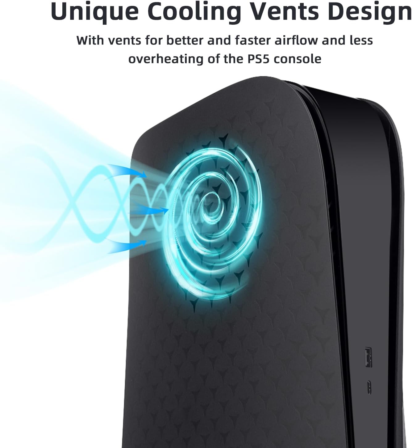- Einzigartiges Design: Die playstation 5 Abdeckung wurde entwickelt, um Ihnen ein reibungsloseres Spielerlebnis zu bieten. Die speziell angepasste playstation 5 Platten haben Löcher auf beiden Seiten zur optimalen Kühlung, die die Luftzirkulation besser