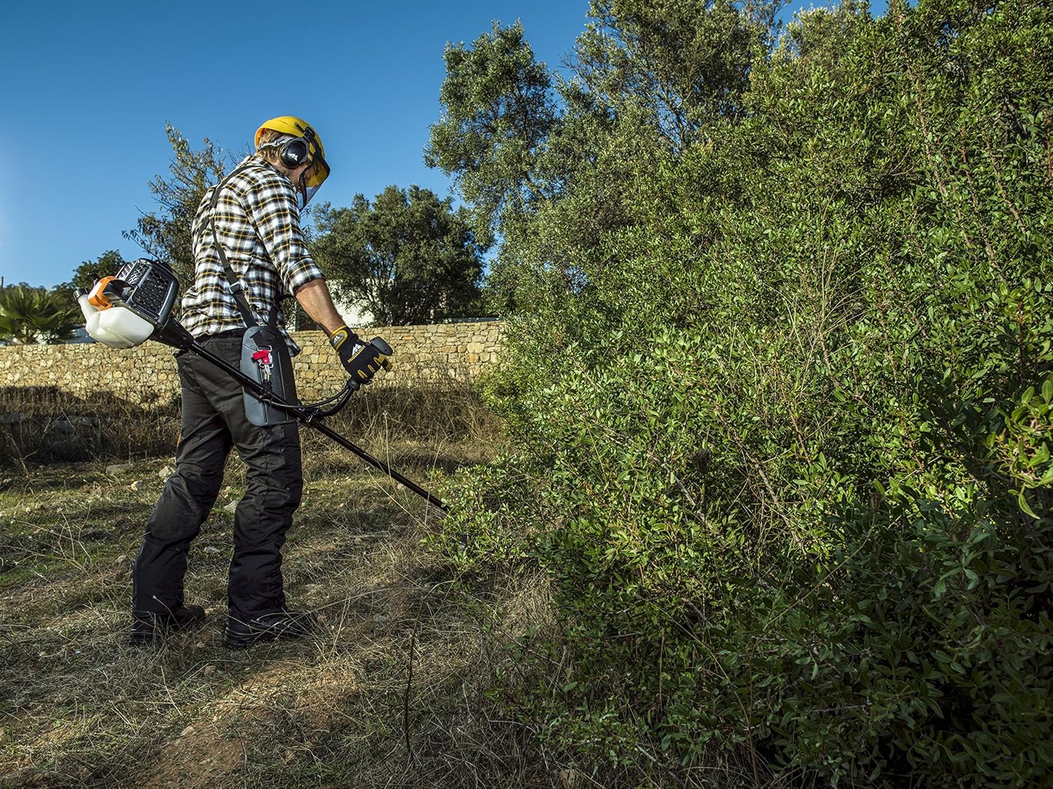 - Starke Motorpower: Der benzinbetriebene Freischneider mit 1.25 kW Leistung und 43 cm³ Hubraum schneidet problemlos dicht überwuchertes Gras