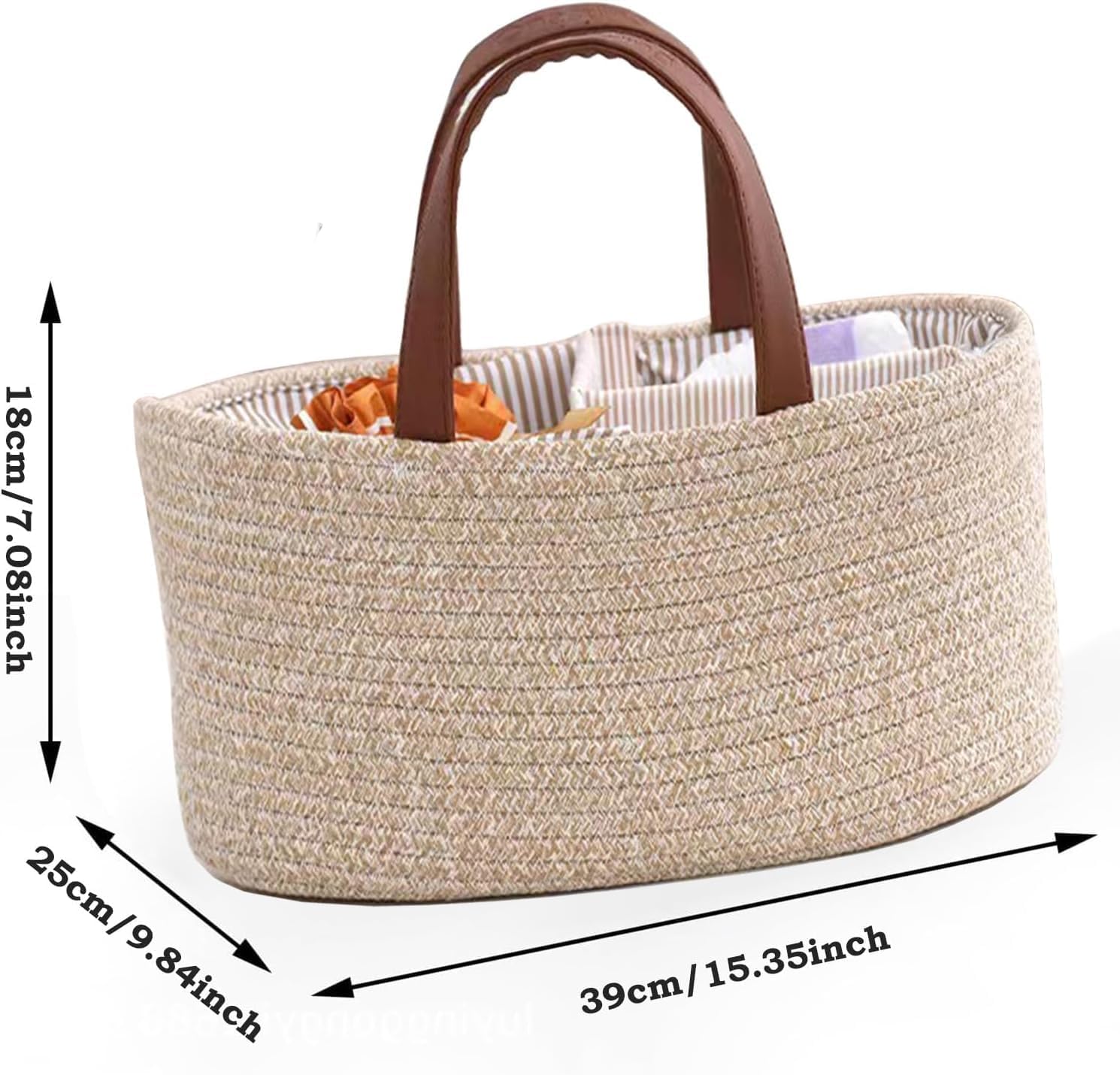 - 【EINFACH STILVOLLES DESIGN & GRÖssE】38 x 25 x 18 cm (ungefähr 15 x 9,8 x 7,1 Zoll). Klug gestaltete Baumwollseil-Windeltasche, Ausreichender Stauraum kann Ihre Windeln, Feuchttücher und andere Essentials perfekt organisiert halten, sodass Sie im