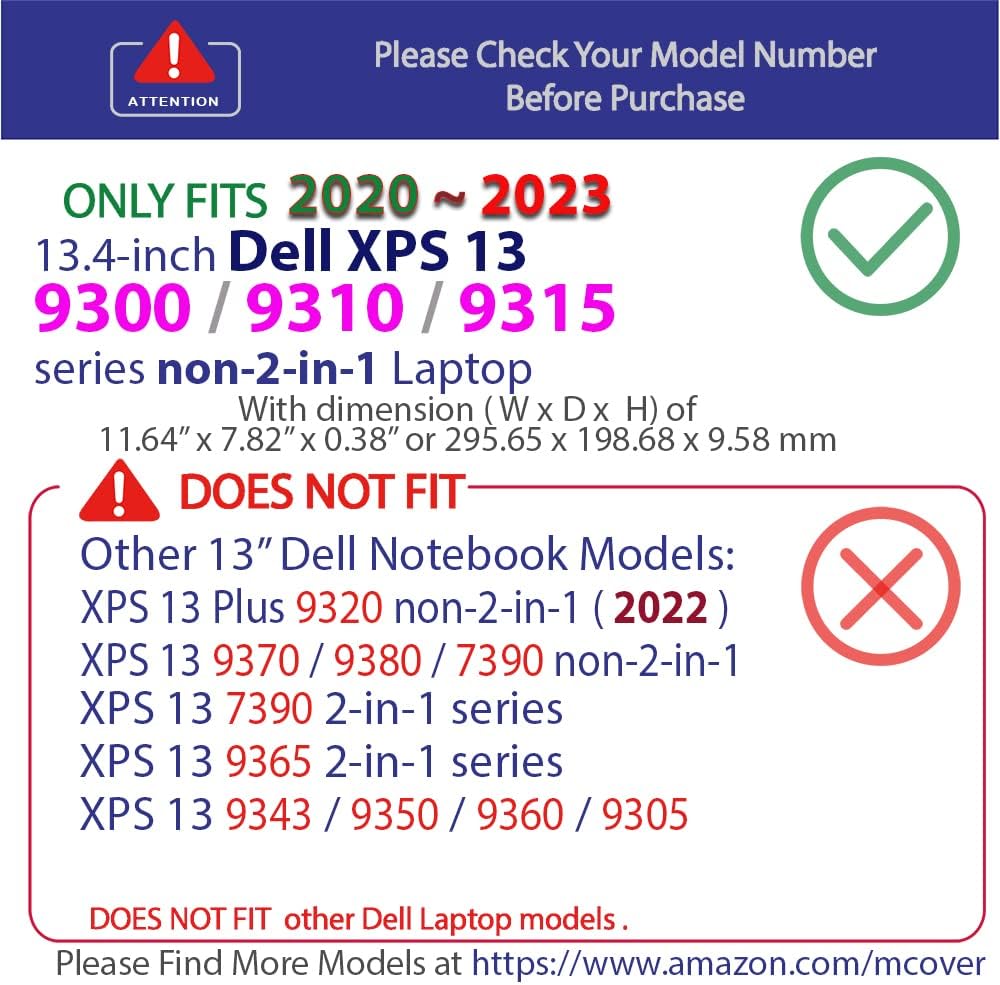 - 鉂囷笍 Entwickelt, um alle Ecken f眉r 2020 13,4 Zoll Dell XPS 13 9300 Serie Ultrabook Laptops zu sch眉tzen. Nicht kompatibel mit 盲lteren XPS 13 L321X / L322X / 9333 / 9343 / 9350 / 9360 / 9370 / 9380 Modellen, die vor Juni 2020 ver枚ffentlicht