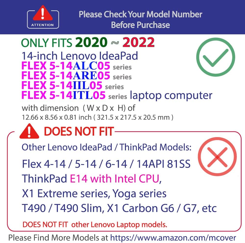 - Hergestellt aus hochwertigem, durchscheinendem Polycarbonat-Material, das bruchsicher ist und Ihren Lenovo IdeaPad Flex 5-14ARE05 / 5-14ALC05 / 5-14IIL05 / 5-14IIL05 / 5-14ITL05 Convertible Laptop Computer rundum schützt