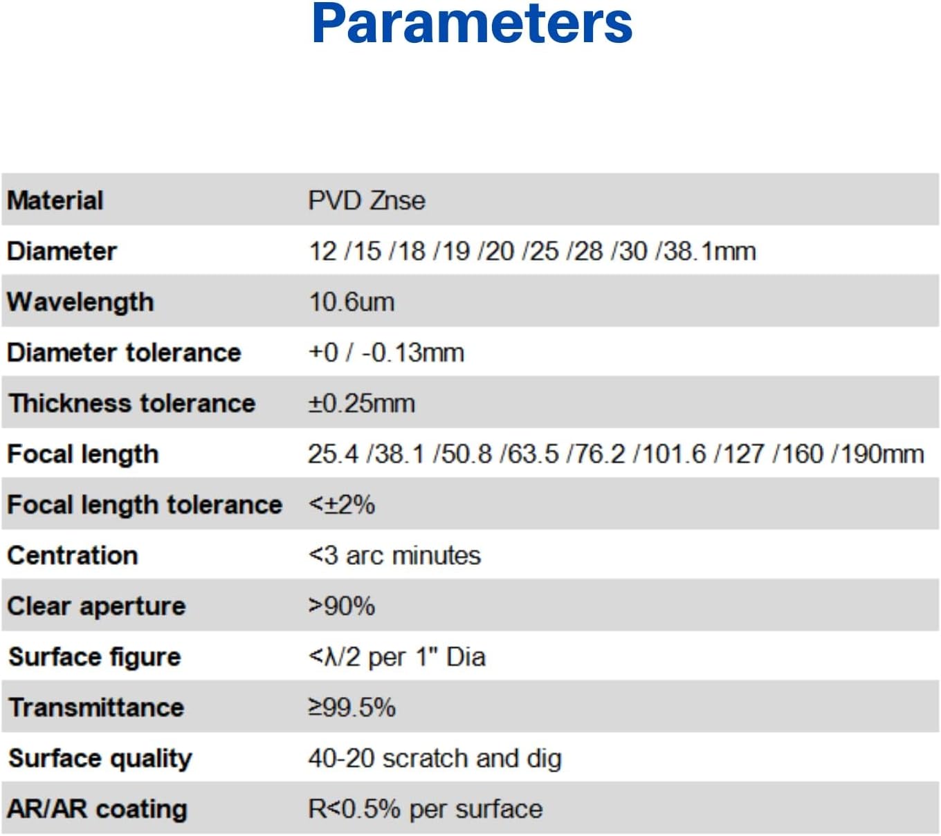 - Material: Hight quality PVD ZnSe crystal material