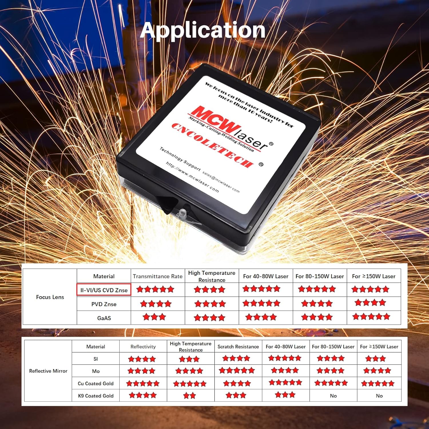 - Anwendung: Es ist weit verbreitet in Schneiden, Gravieren, Bohren, Schweissen und andere CO2-Laser verwendet; es hat eine gute Leistung für 10600nm 10.6um CO2-Laser.