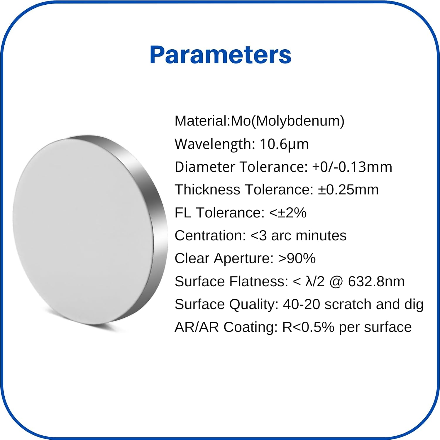 - Durchmesser: 20mm/0,79 Zoll; Dicke: 3mm/0,12 Zoll; Form: Ebene; Durchlässigkeit: >99,2%