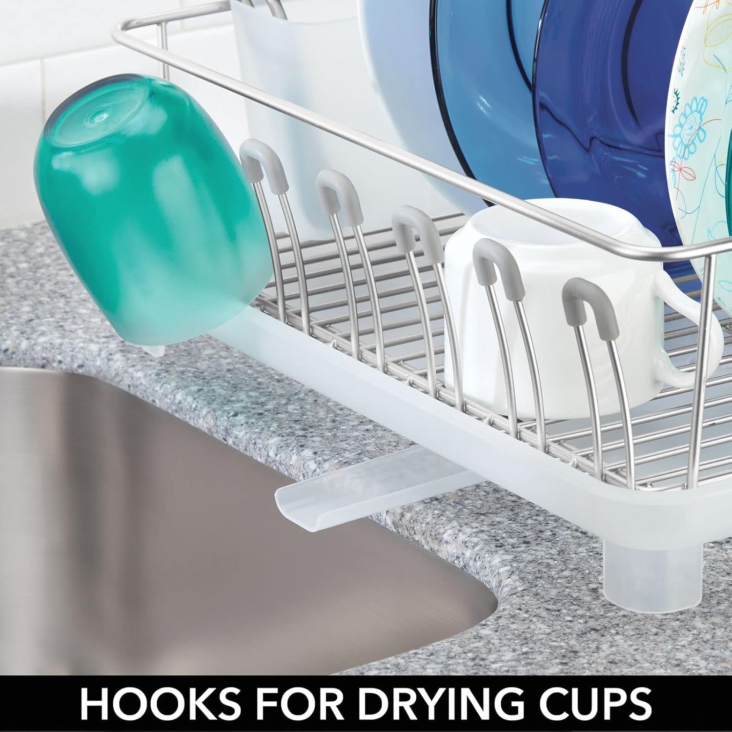- ROBUSTES MATERIAL: Der Geschirrkorb besteht aus Metall mit einem rostbeständigem Finish, die Abtropfplatte und der Besteckkorb aus BPA-freiem Kunststoff. Das Set ist nicht spülmaschinenfest.