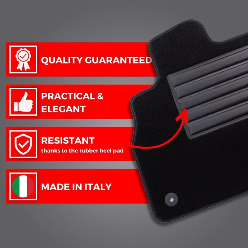 - Teppich Schwarz, Bordüre aus Baumwolle schwarz mit Strap Antirutsch für den ganzen Umfang der Teppiche – 100% Made in Italy, Zertifikat Automotive