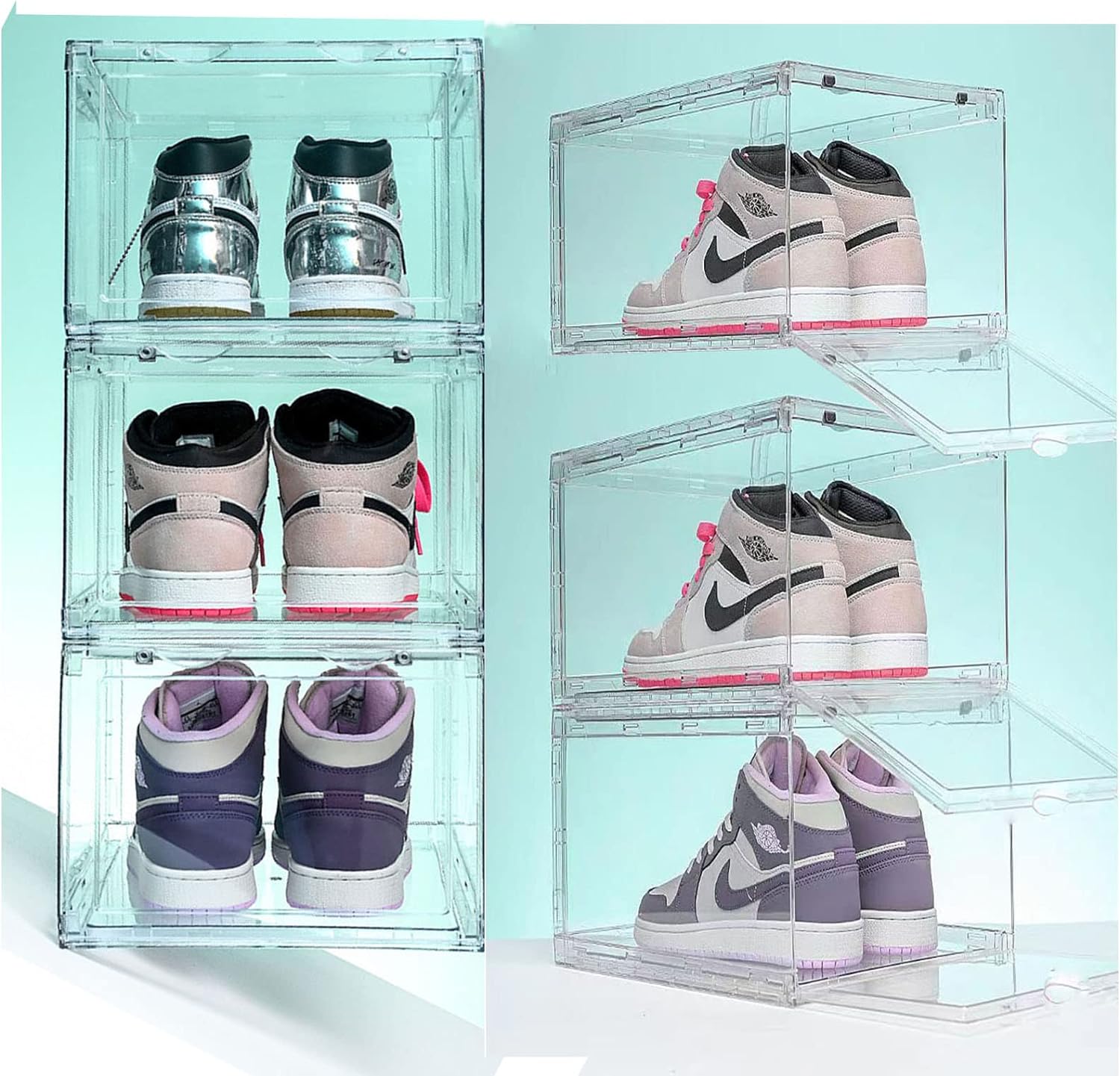 - 【HOHE TRANSPARENZ】 Die klaren transparenten Schuhaufbewahrungsboxen mit 360-Sicht auf Ihre Lieblingsschuhe, rundum perspektivische Anzeige. Finden Sie die richtigen Schuhe in Sekunden, ohne alle Box zu öffnen, sparen Sie Ihre Zeit, stilvoll und