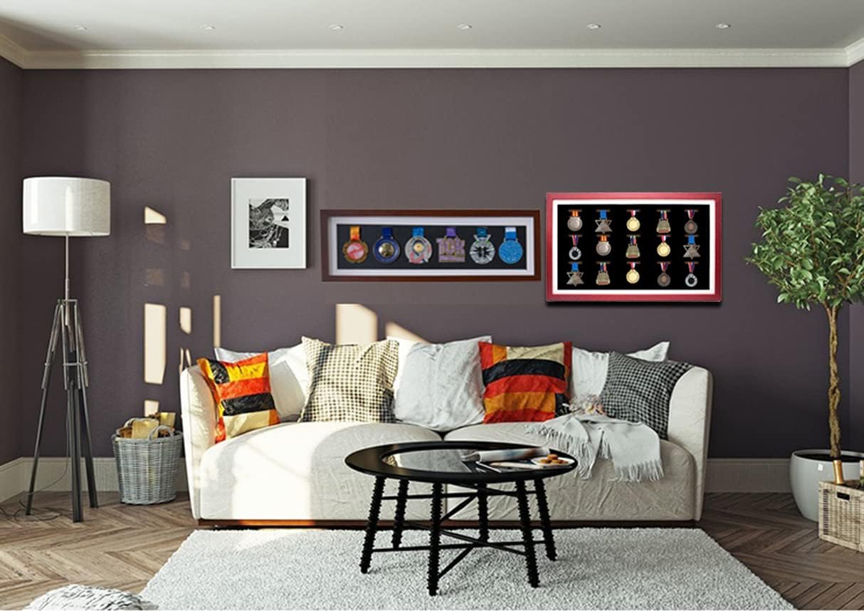 • 👍Einfach zu bedienen: kein Werkzeug erforderlich. Der Medaillenrahmen ist einfach zu montieren, indem Sie einfach das Band durch den Schlitz führen und es an der Rückseite befestigen. Der Medaillen-Schaukasten kann vertikal oder horizontal