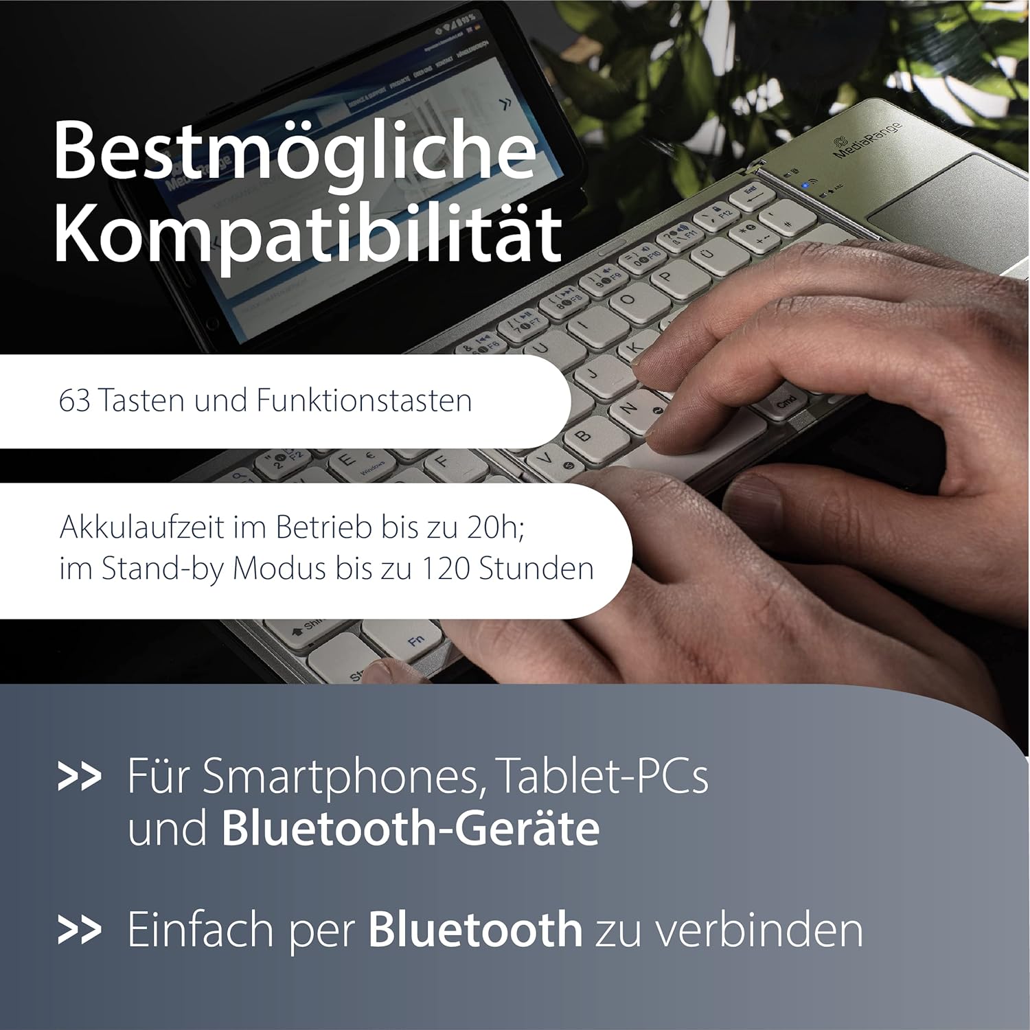 - KLAPPBARE FUNK-TASTATUR OHNE KABEL: Diese kabellose Tastatur überzeugt durch solides und faltbares Design, funktionelle Eigenschaften und bietet höchste Produktivität für für sämtliche Anwendungen im Büro oder Zuhause