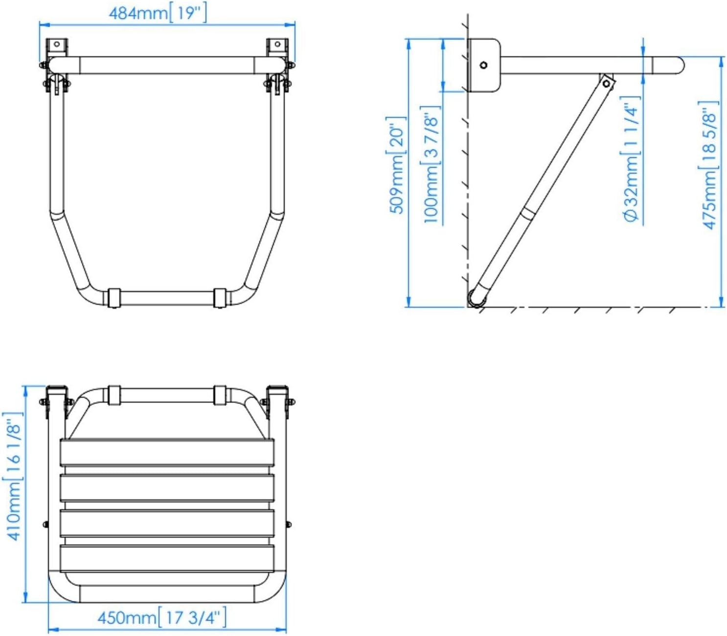 PRODUKTBESCHREIBUNGEN Asiento para ducha abatible, compuesto por una estructura realizada con tubo de acero inoxidable mate AISI 304, de Ø 32 mm y 1,5 mm de espesor, una superficie de sentado realizada con lamas de acero inoxidable AISI 304, de 1,7 mm de espesor y una pata de apoyo a pared fabricada con tubo de acero inoxidable AIS 304 de Ø 25 mm y 1,0 mm de espesor.Asiento Abatible En Acero Inox Aisi 304, Acabado Satinado, Para Duchas Y Vestidores. Adecuado Para Lavabos Específicos Para Minusválidos Y Tercera Edad. Modelo Apto Para Colectividades. Peso Máx Sostenible:113 Kg.